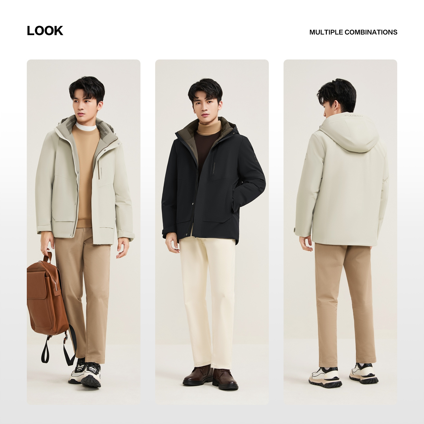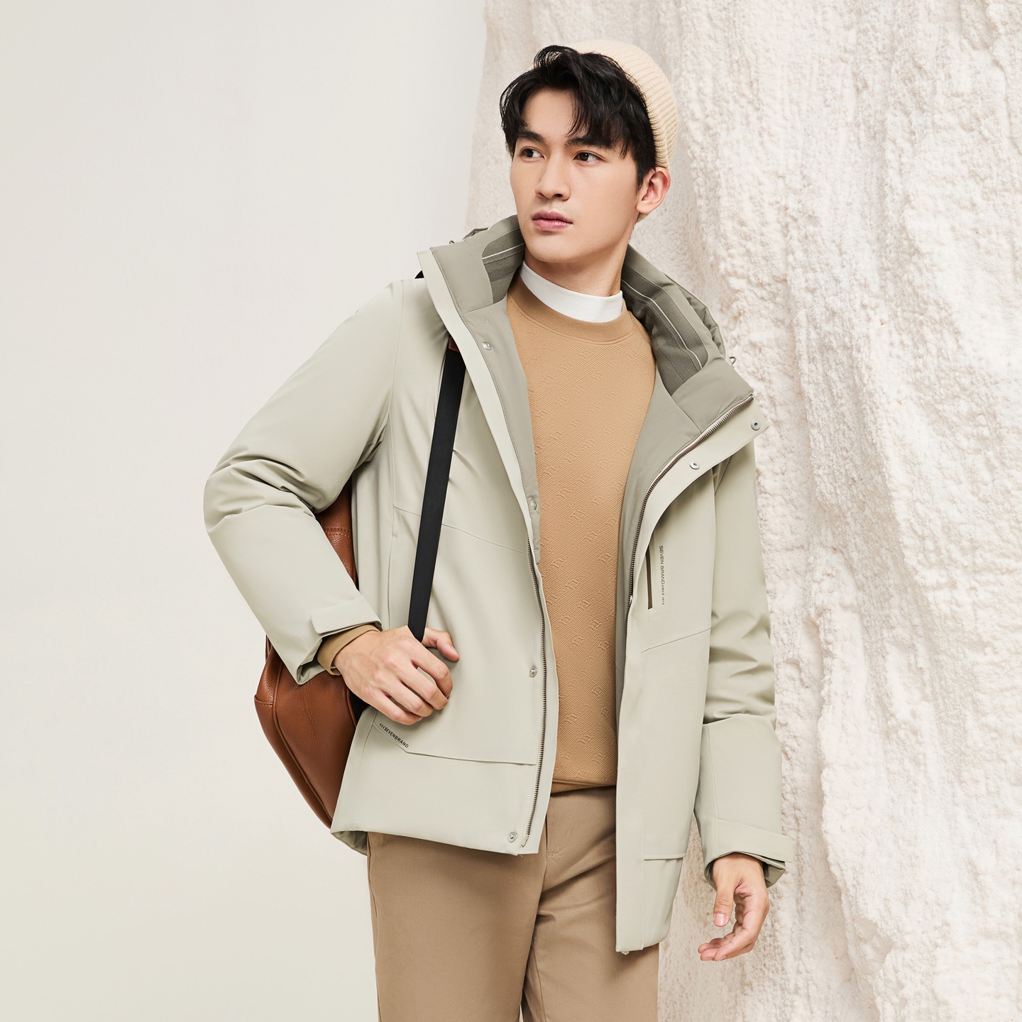 【黄金鲜羽绒】柒牌男士可拆卸连帽羽绒服保暖舒适羽绒外套