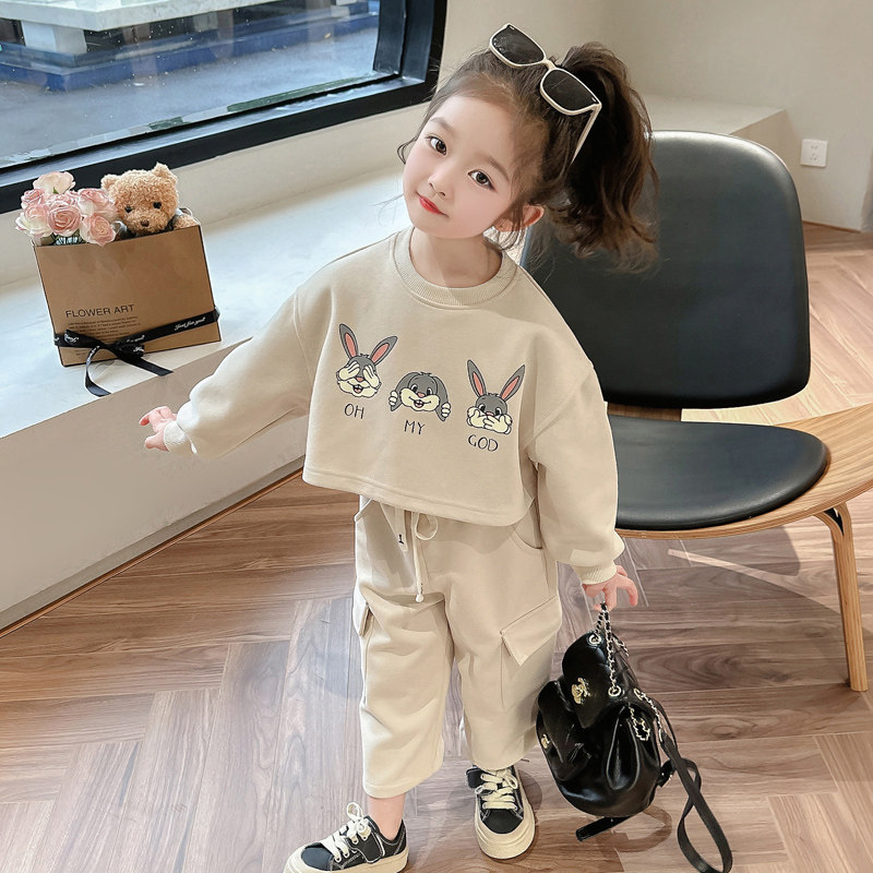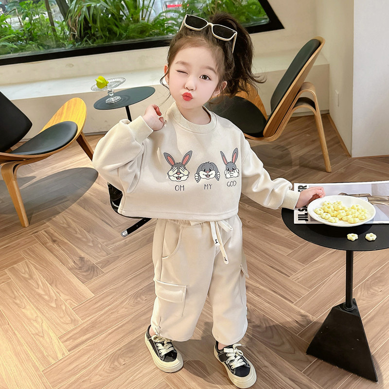 女童卫衣套装春秋款2026新款春季时髦洋气女孩休闲儿童工装运动套