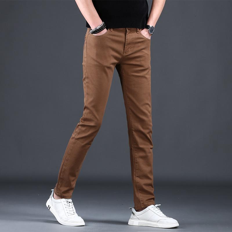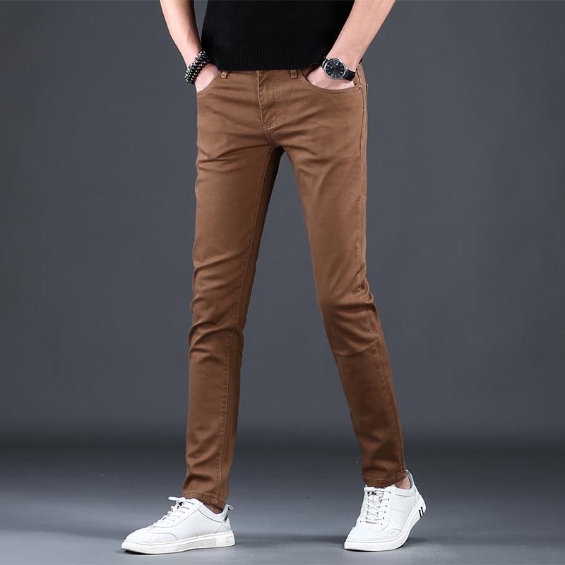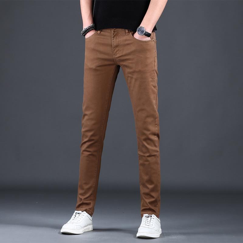 裤子男款爆款2025新款春夏潮牌棕色男士牛仔裤修身小脚裤弹力紧身