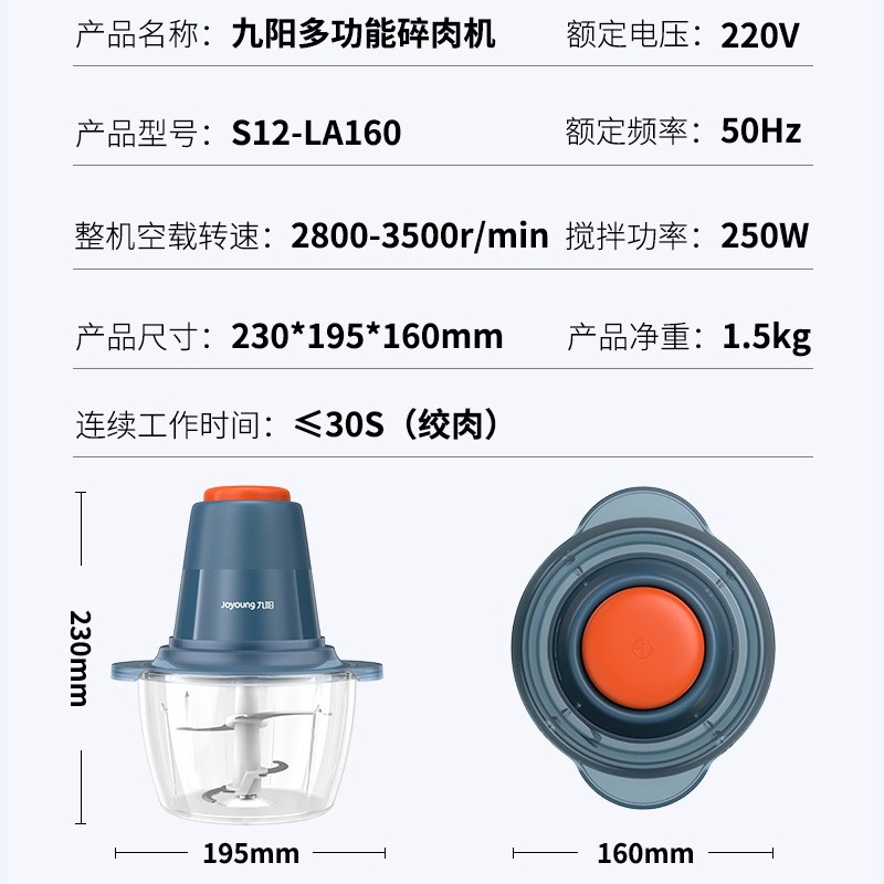 九阳绞肉机家用电动小型全自动多功能碎肉绞馅辅食机料理机大容量