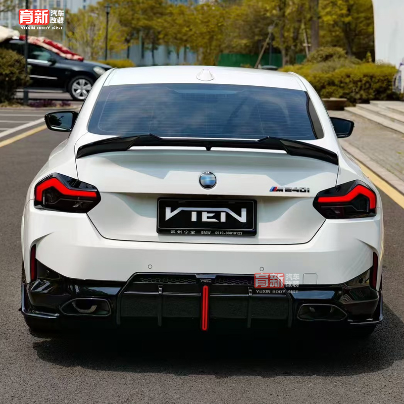 适用宝马2系G42 M240VTEN前唇带灯后唇侧裙后包角尾翼改装黑武士