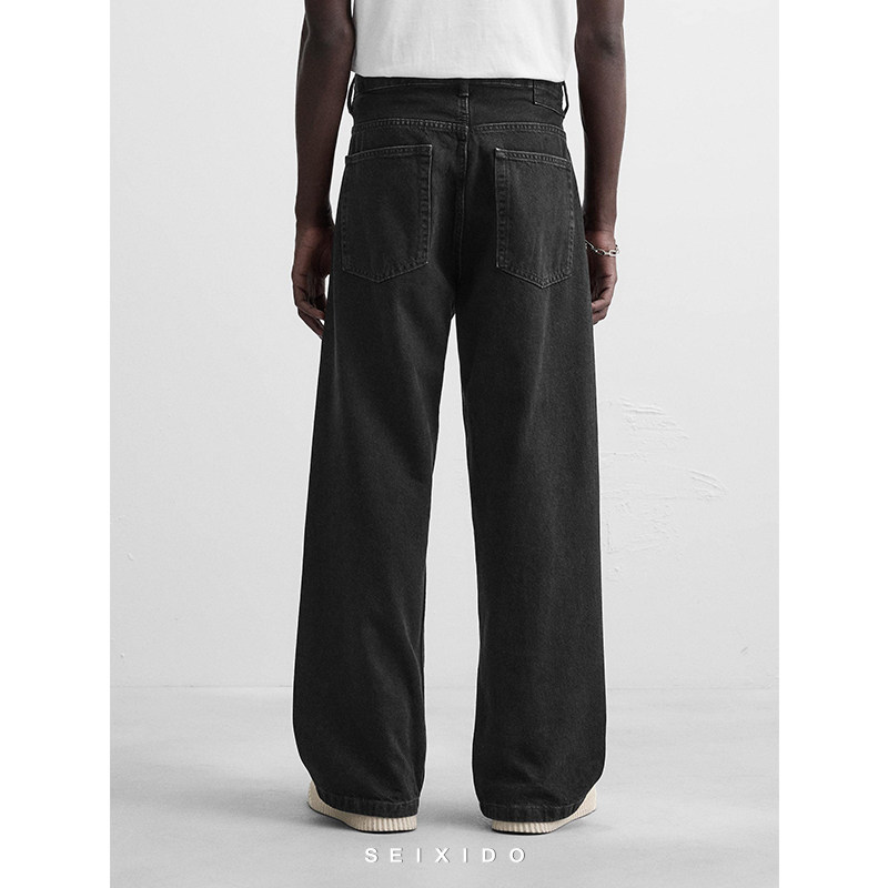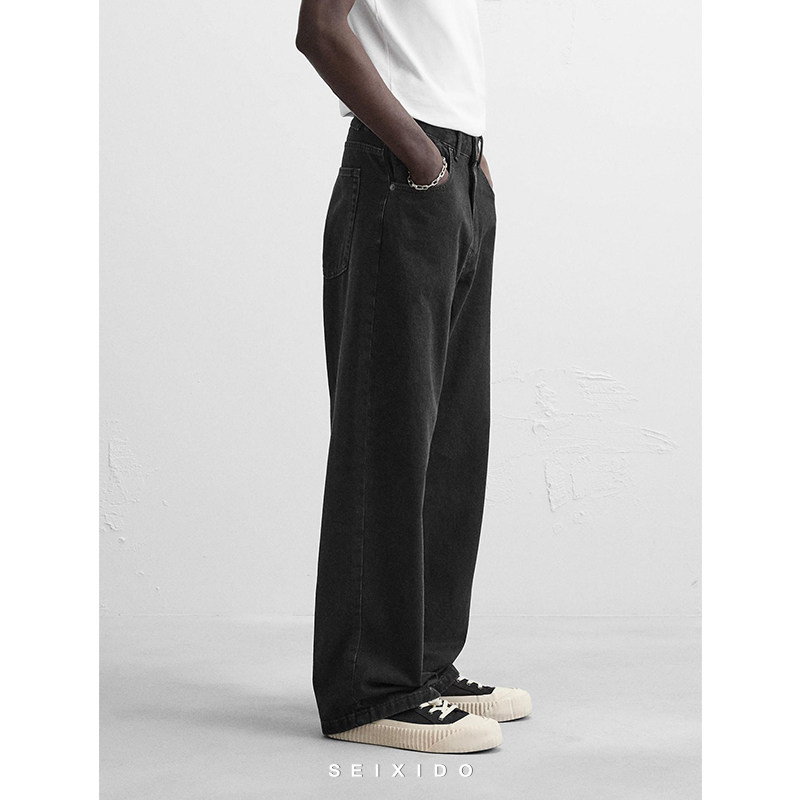 柜319!秋冬新款男装棉质水洗宽松直筒牛仔裤8062380休闲阔腿长裤