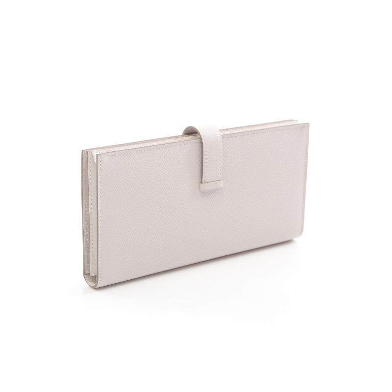 中古Hermes爱马仕女A级95新Bearn souffle牛皮长钱包白色
