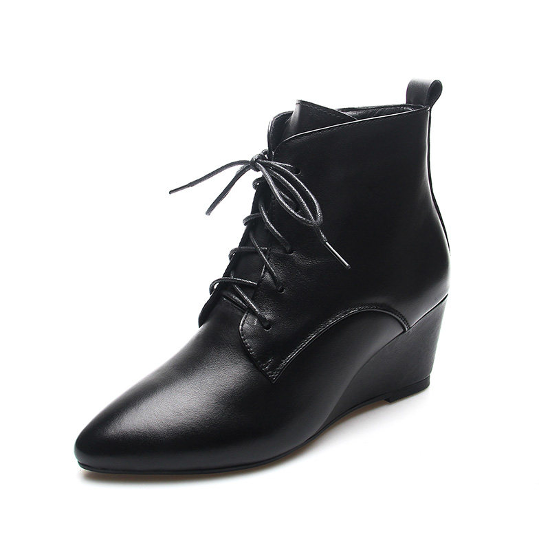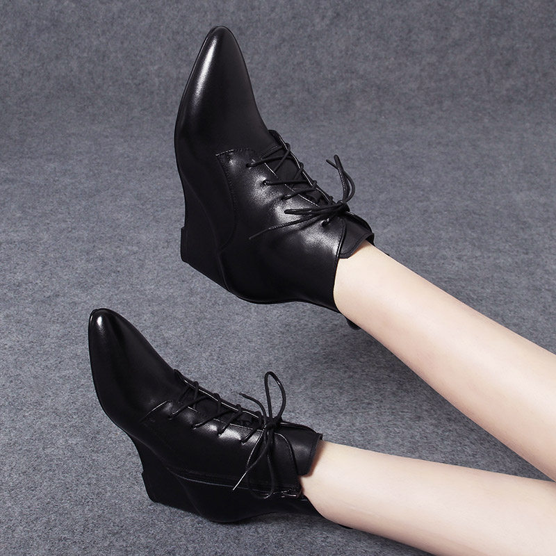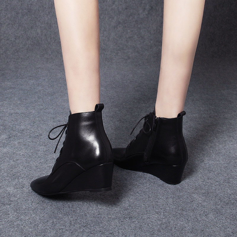真皮坡跟短靴2025年新款时尚洋气马丁靴女秋冬靴子百搭女式高跟鞋