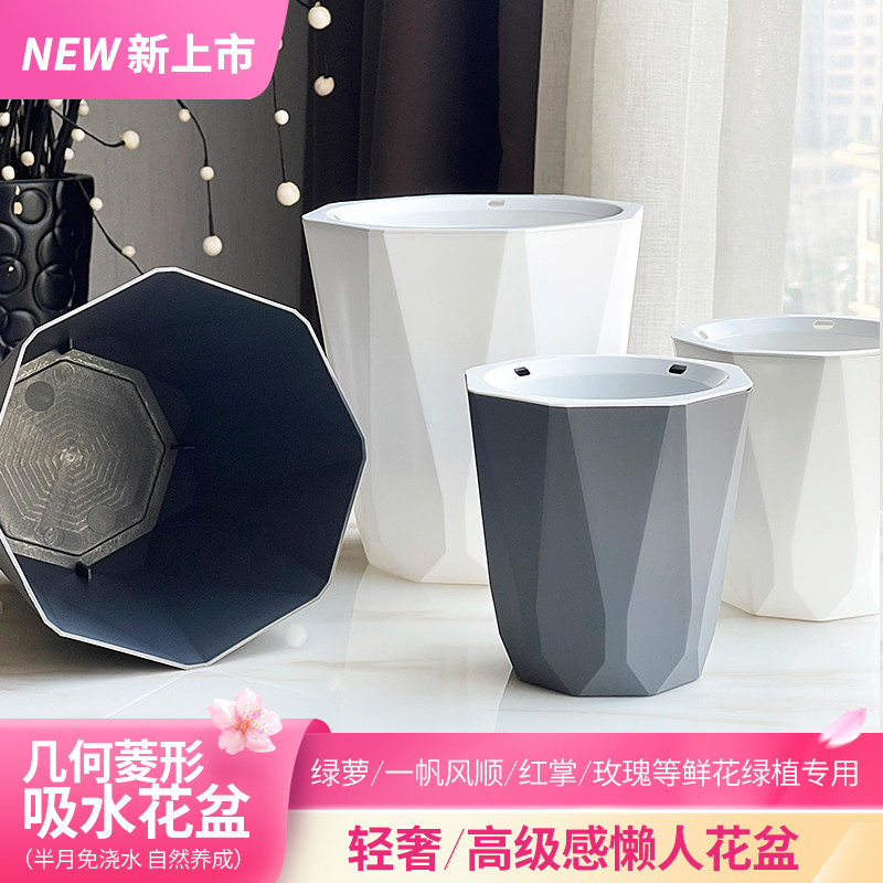 懒人花盆自动吸水家用塑料轻奢高级感水培绿萝多肉大绿箩盆栽耐用