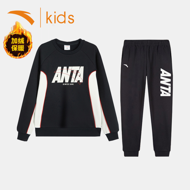 安踏男童加绒卫衣套装