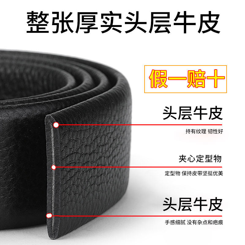 意尔康皮带不带头真皮男士自动扣针扣无头腰带头层纯牛皮无扣裤带