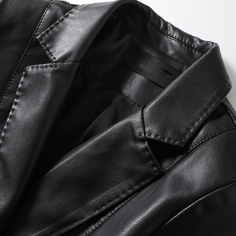 皮衣黑色短款修身气质真皮西装