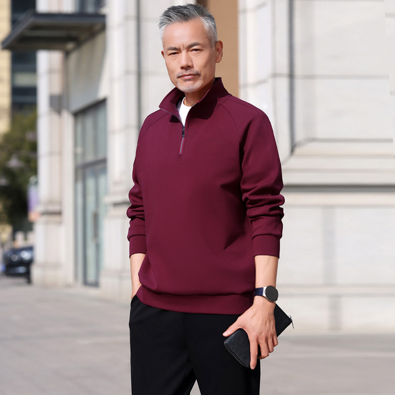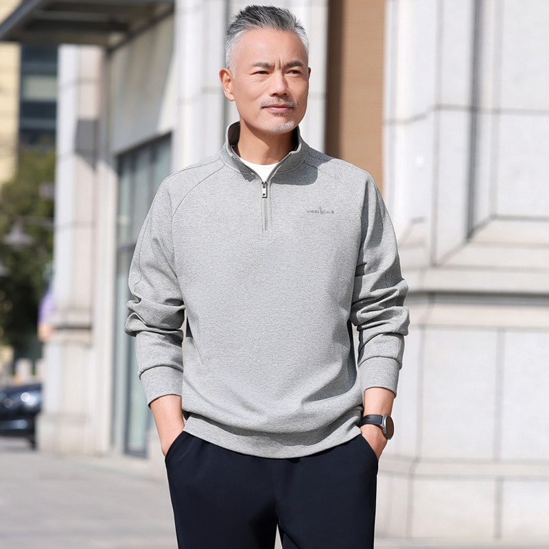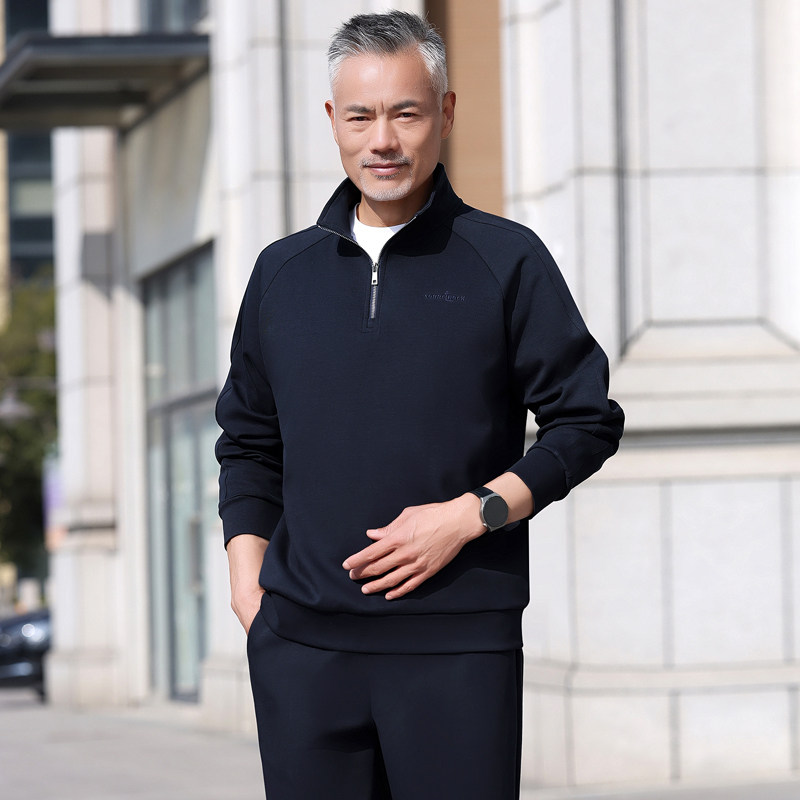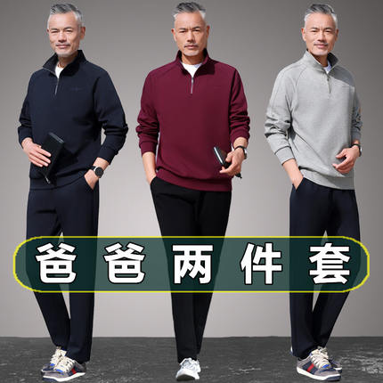 中老年运动套装男春秋爸爸春装衣服套头卫衣男半拉链中年运动服男