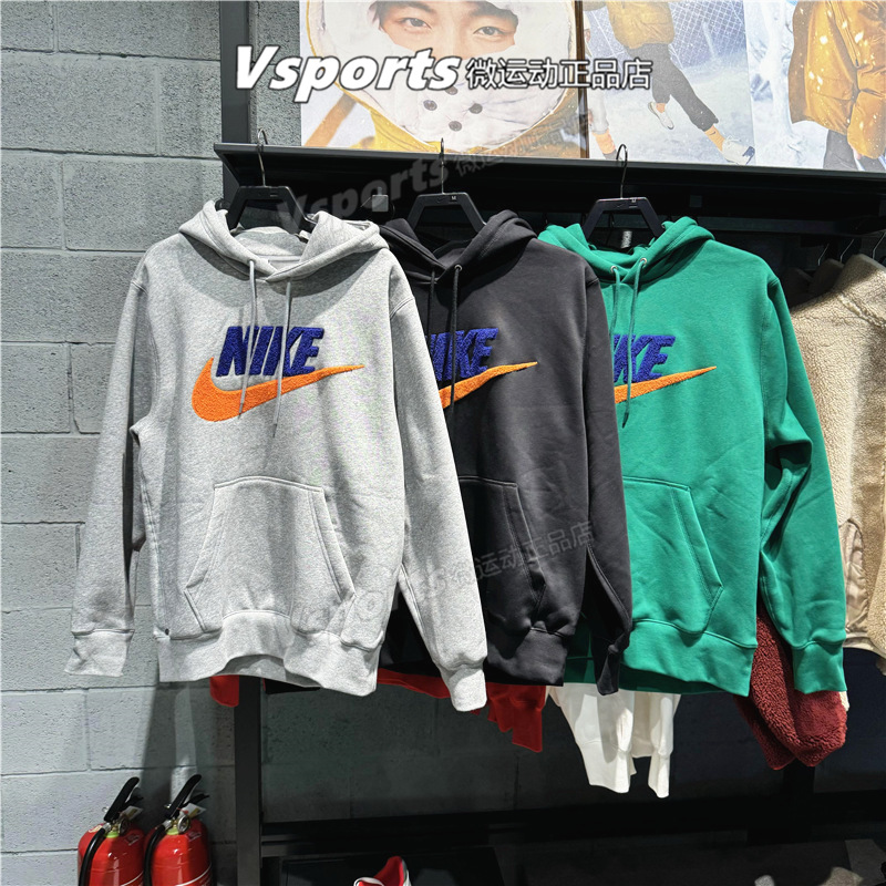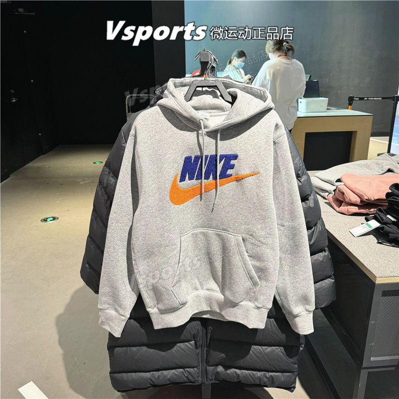 正品耐克卫衣男宽松2024秋冬季运动休闲加绒连帽套头衫FN3105-063