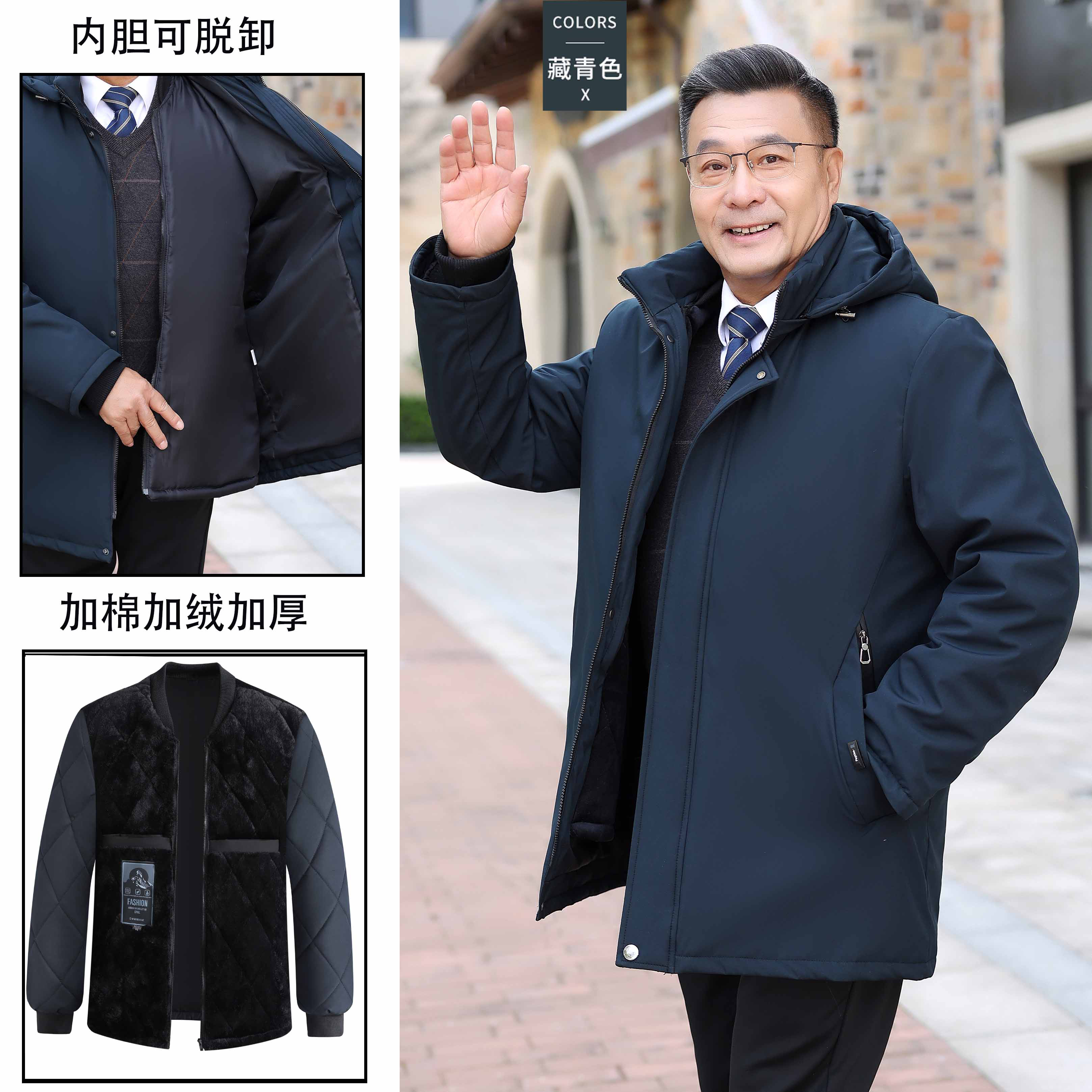 内胆可脱卸巨保暖男士加绒加厚棉衣爸爸中老年人冬装棉服宽松棉袄
