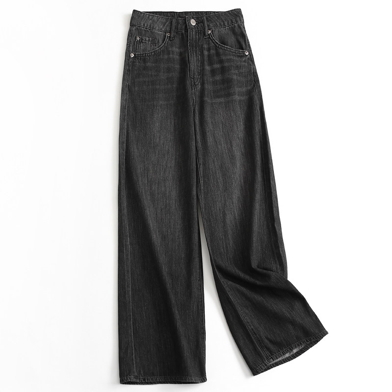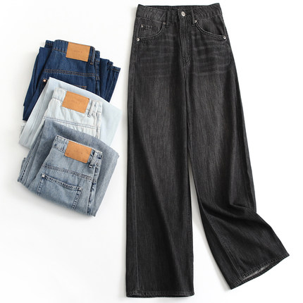 薄款柔软舒适遮跨显瘦高腰直筒裤夏季新款百搭阔腿裤女牛仔裤D149