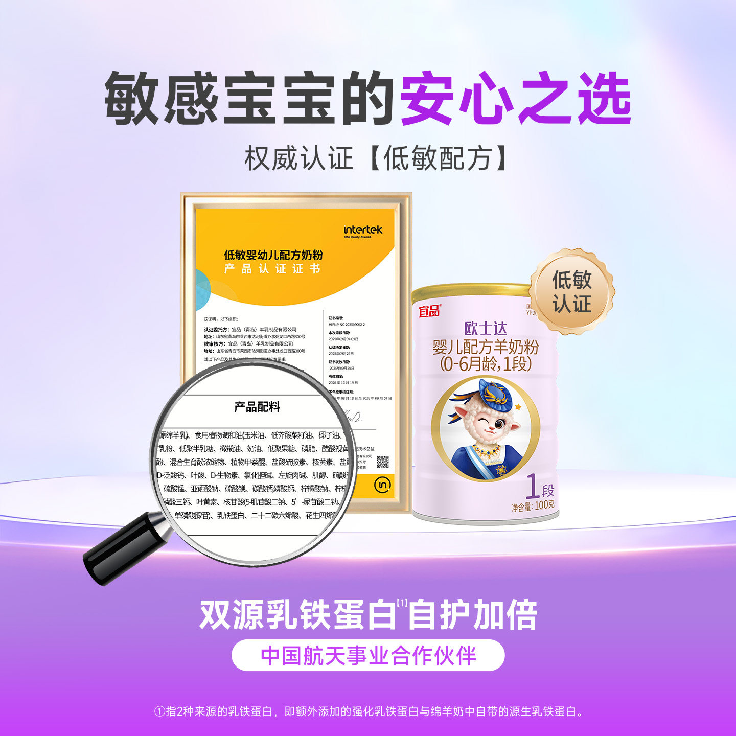 【特价】宜品欧士达绵羊奶粉1段婴幼儿益生菌配方100g 0元试喝
