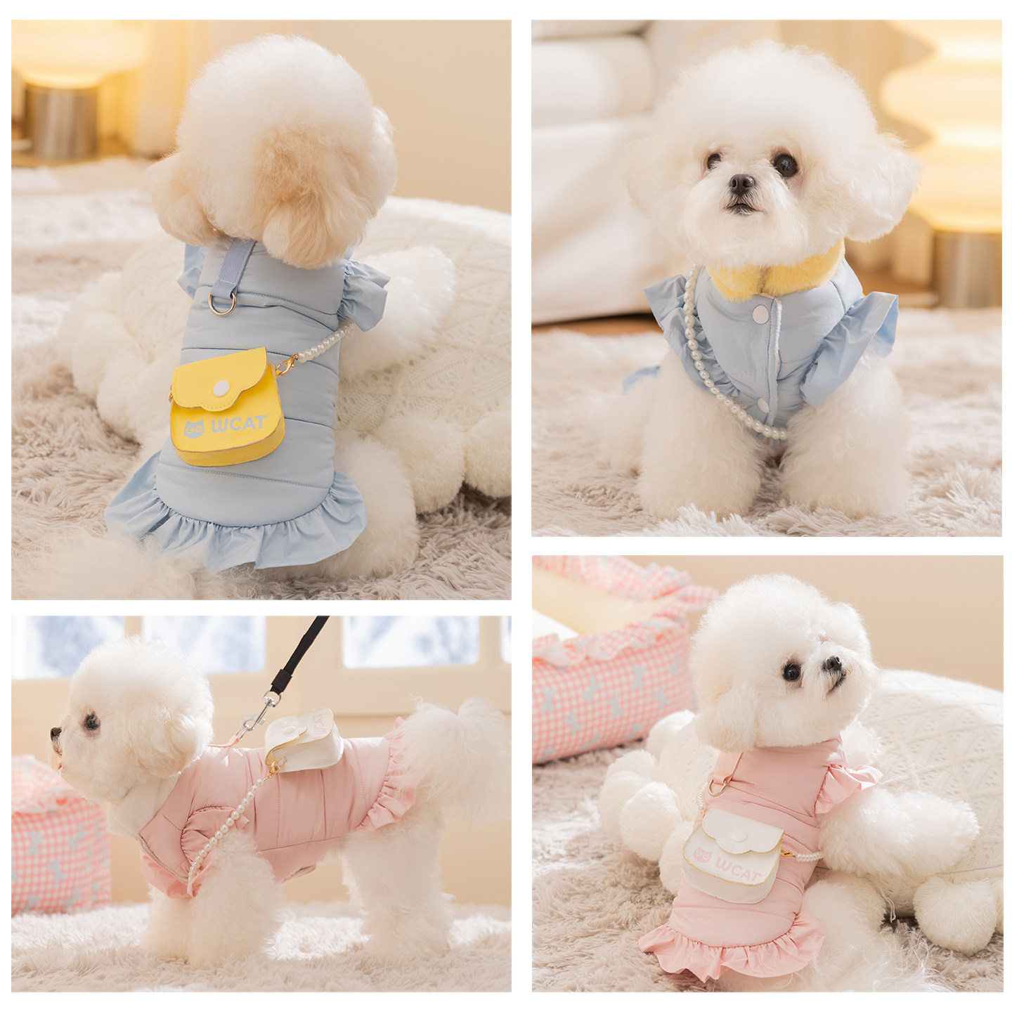 轻奢珍珠马甲冬季加厚比熊衣服保暖小狗狗泰迪宠物小型犬冬天冬装