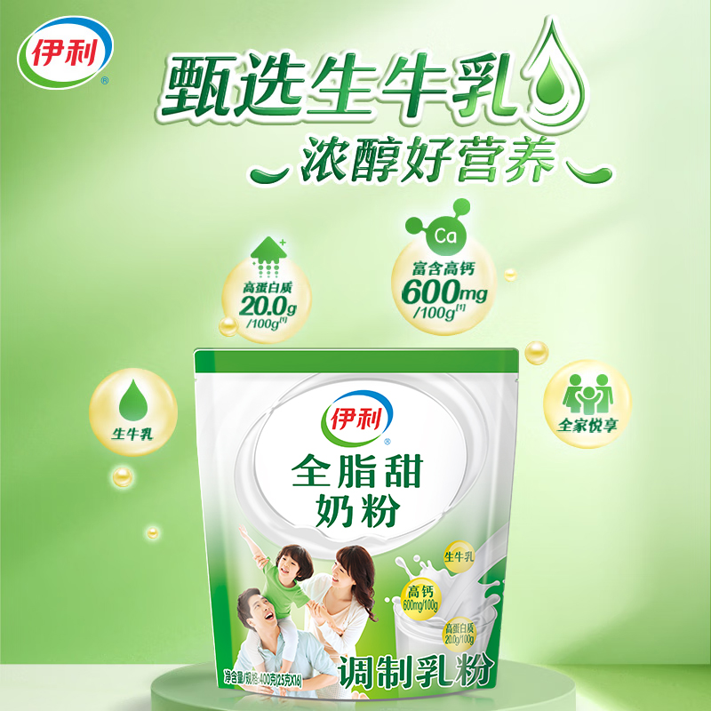 伊利全脂甜奶粉大学生儿童青少年中老年奶粉400g冲饮早餐成人奶粉