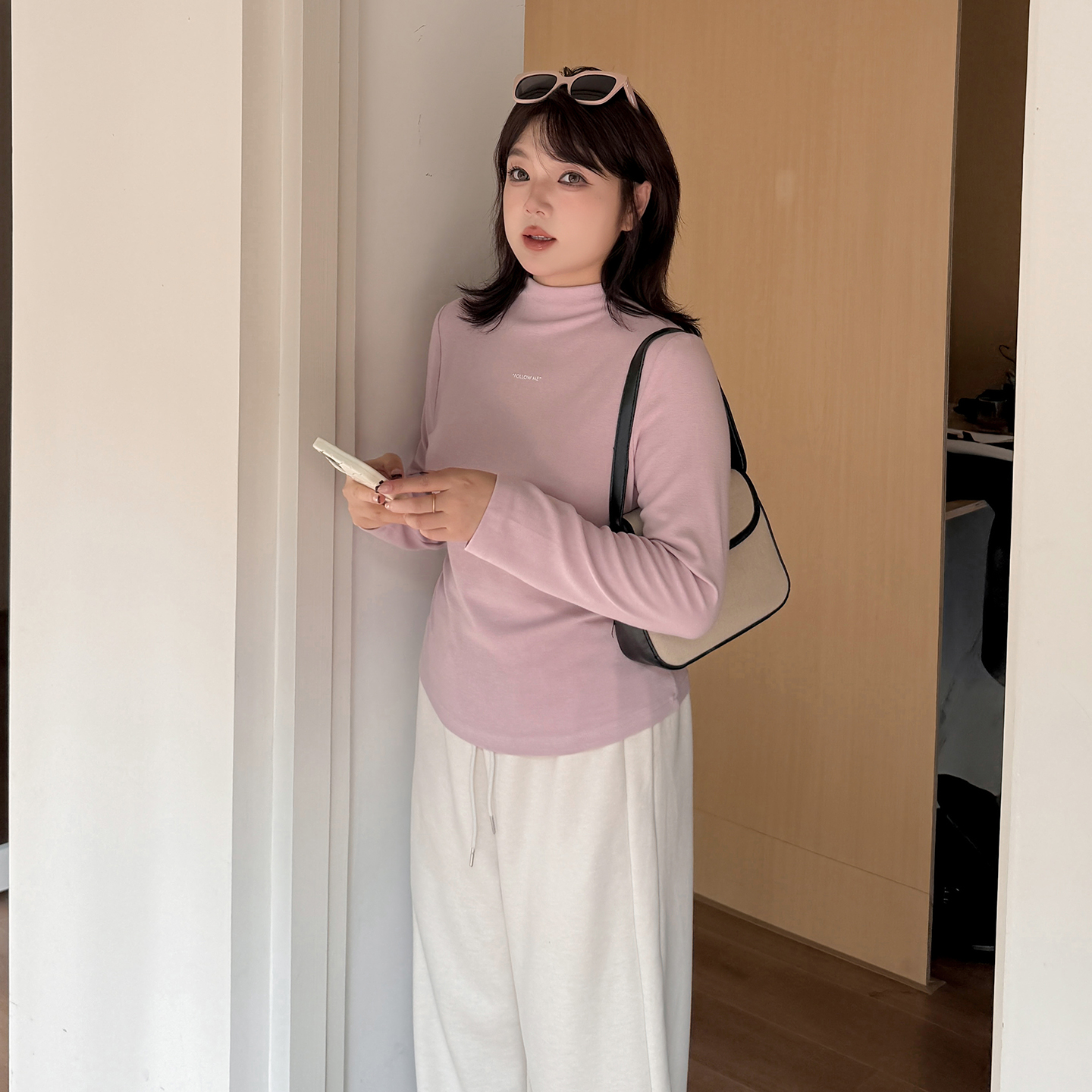胖mm大码女装韩版宽松打底衫2025春新款200斤简约百搭半高领上衣