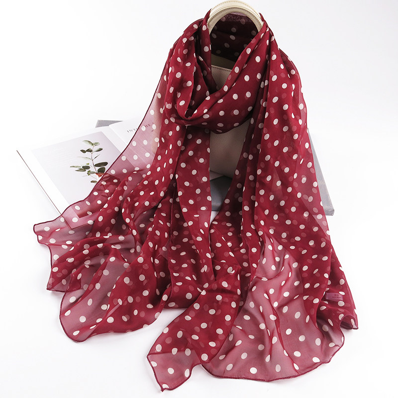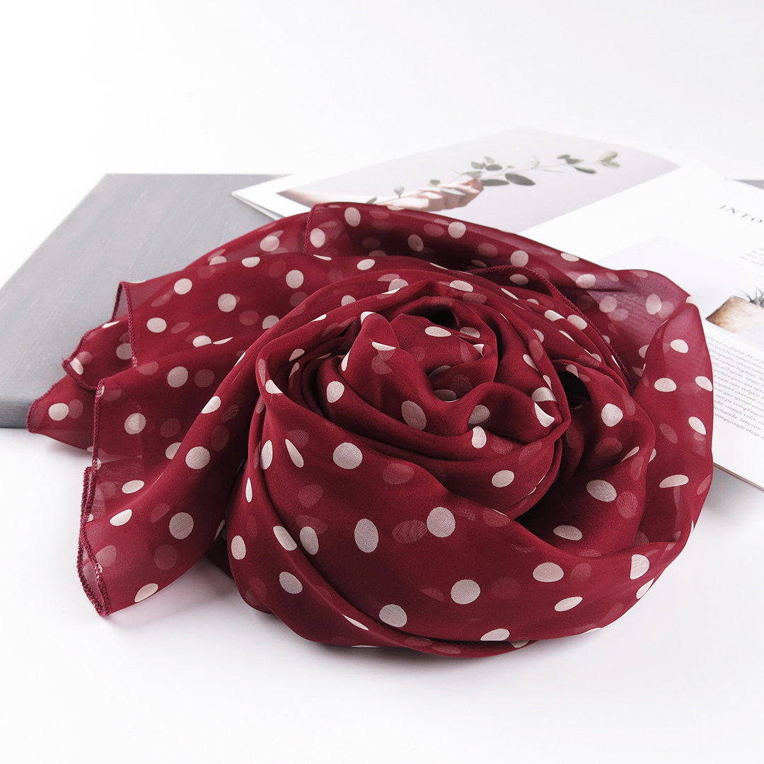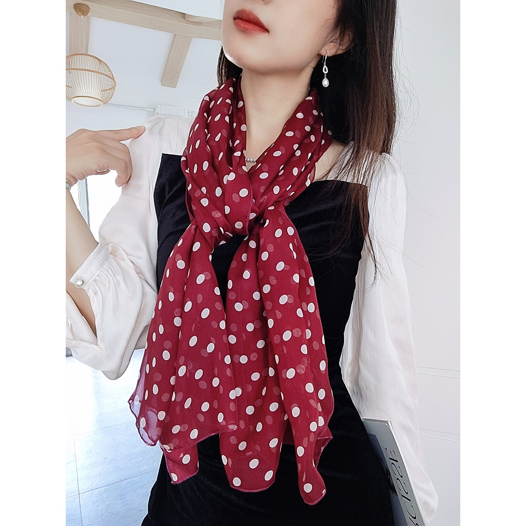 酒红色波点围巾2025系脖女士百搭真丝披肩纱巾春秋冬季桑蚕丝丝巾