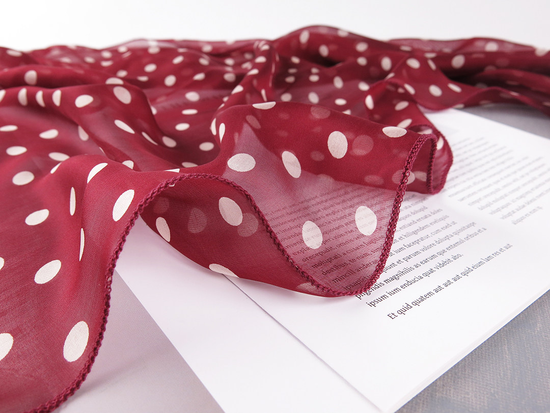 女人味!酒红色波点长丝巾!品牌