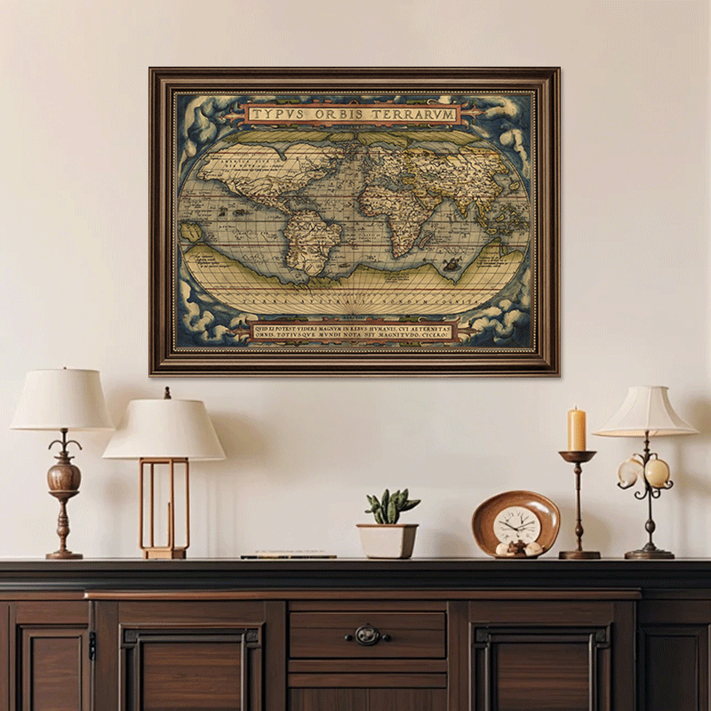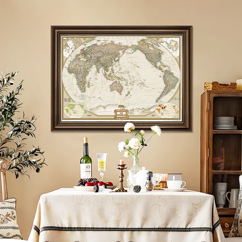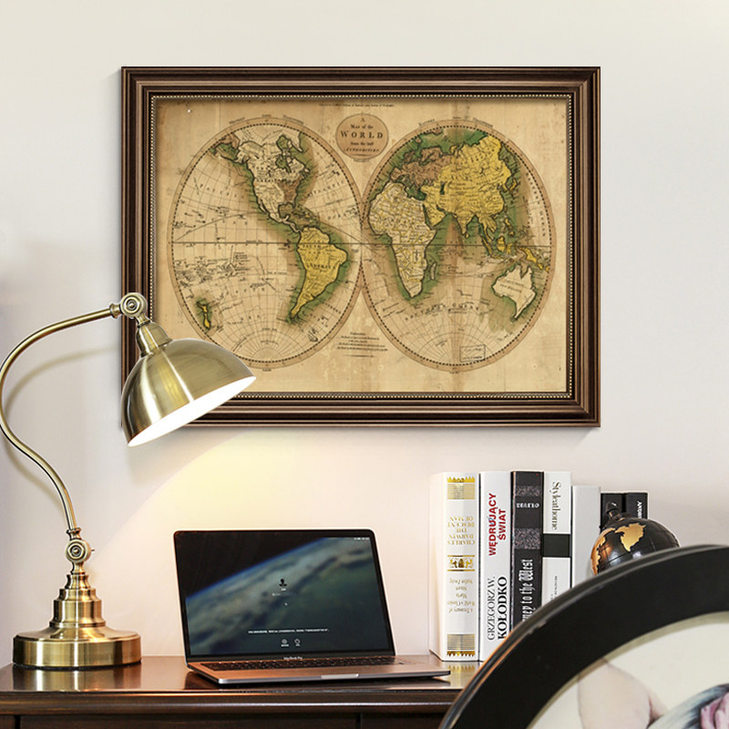 世界地图墙面装饰美式书房挂画办公室客厅背景墙复古油画欧式壁画