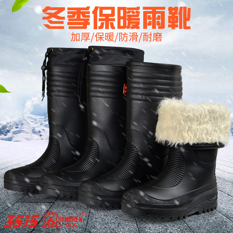 冬季雨鞋加绒雨靴男加厚加棉保暖一体棉防滑钓鱼水靴防水高筒水鞋