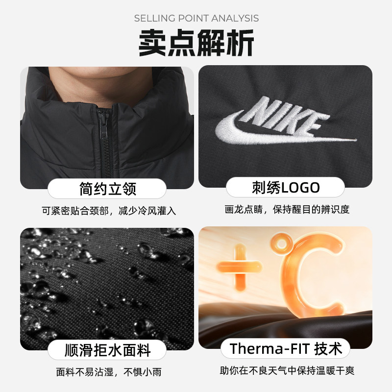 NIKE耐克短款羽绒服男装女装运动服立领面包服情侣款夹克保暖外套