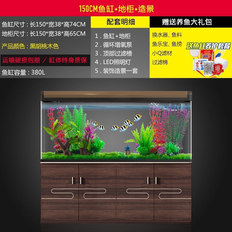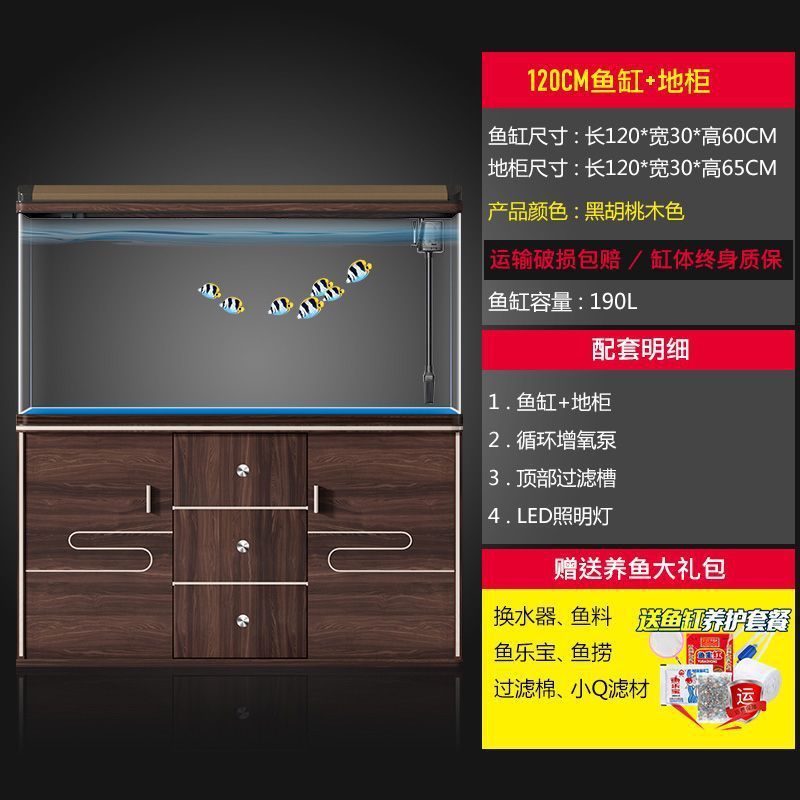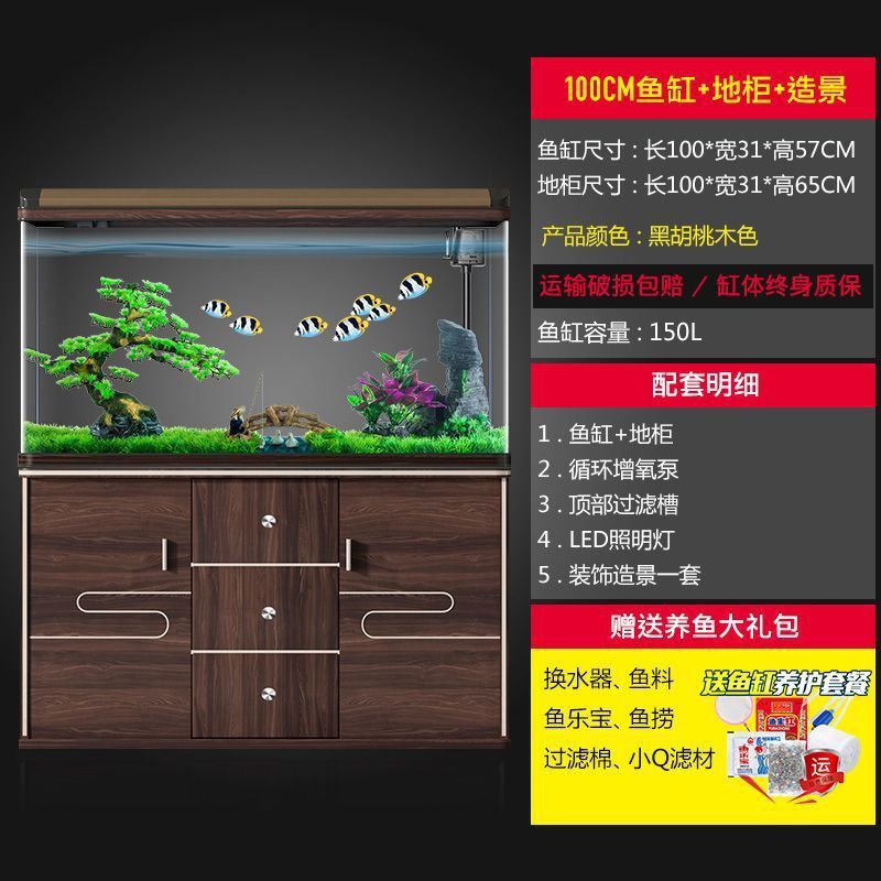 大鱼缸水族箱一体家用玻璃金鱼缸懒人免换水生态带底柜客厅落地