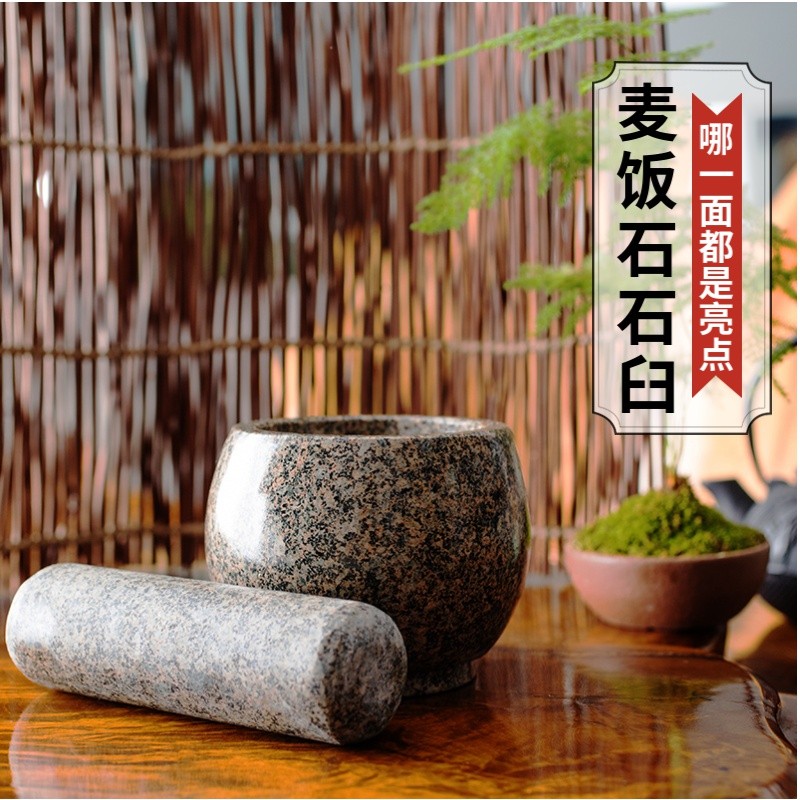 麦饭石臼捣蒜缸压蒜器蒜泥神器拍蒜研磨老式舂钵家用擂钵大臼子