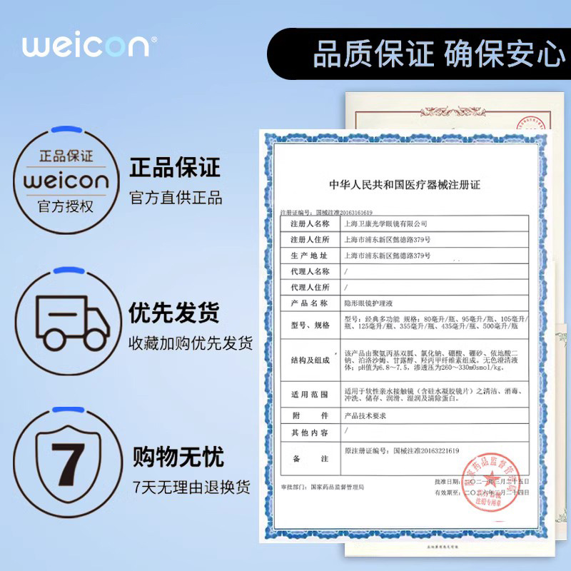卫康护理液隐形眼镜美瞳润滑液80ml*3小瓶装可上飞机便携旅行装sl