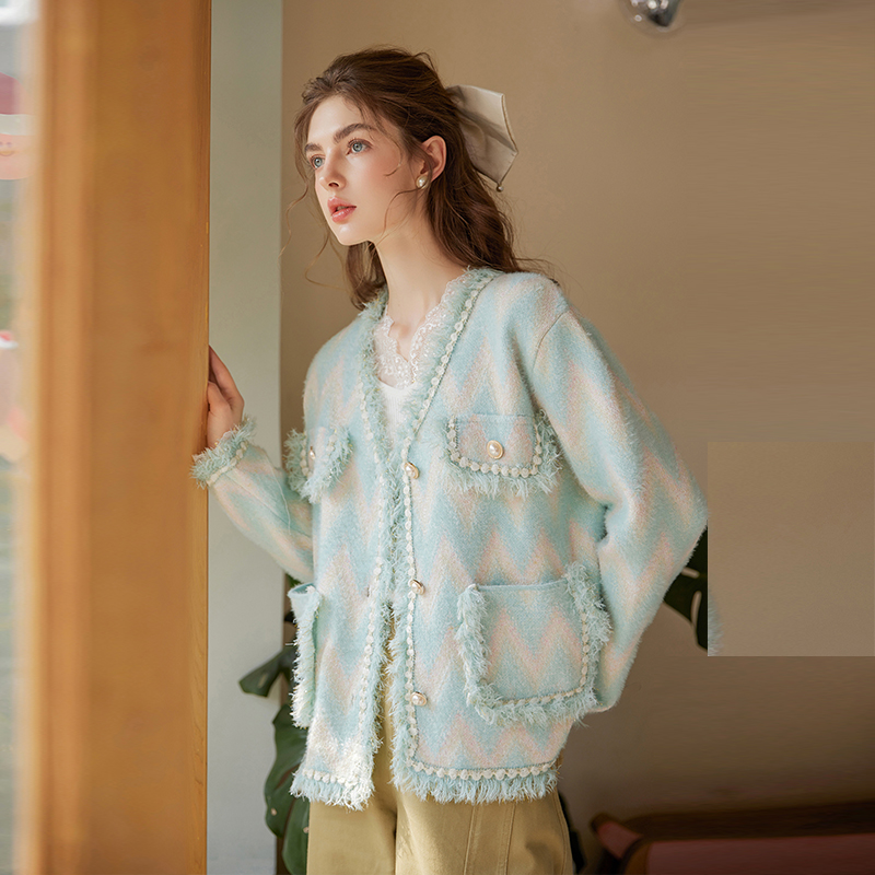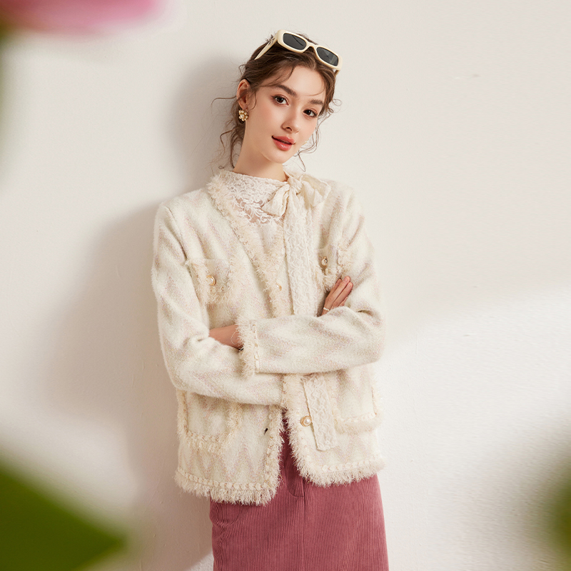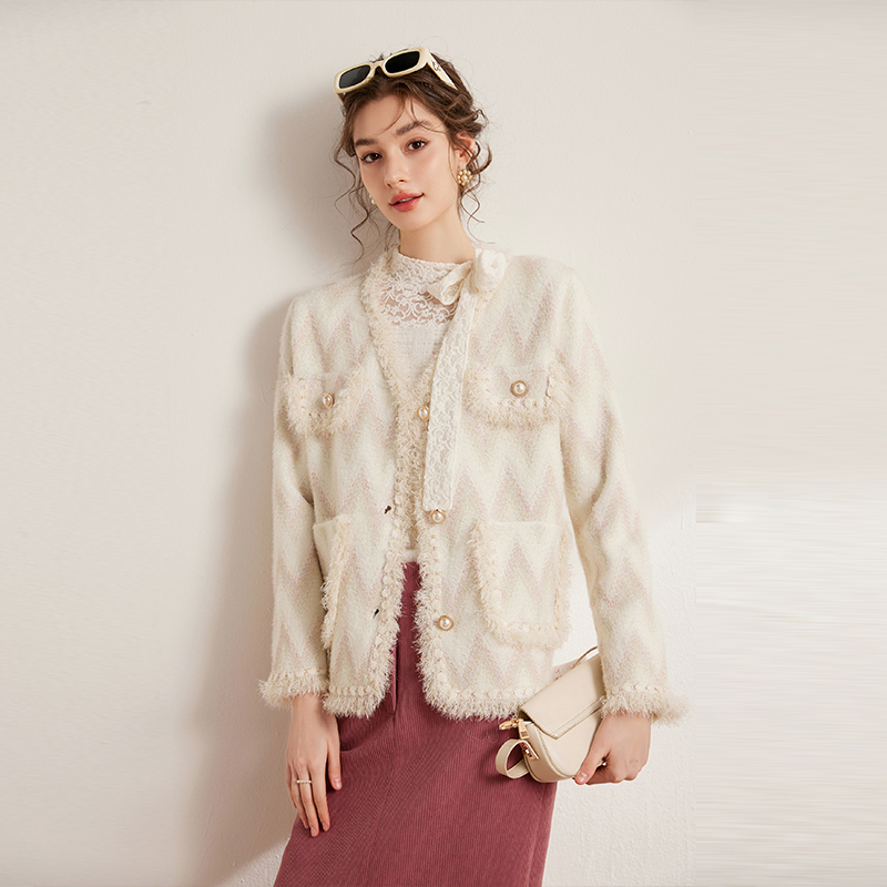白鹿语小香撞色短外套冬季新款单排扣开衫流苏毛边减龄上衣女