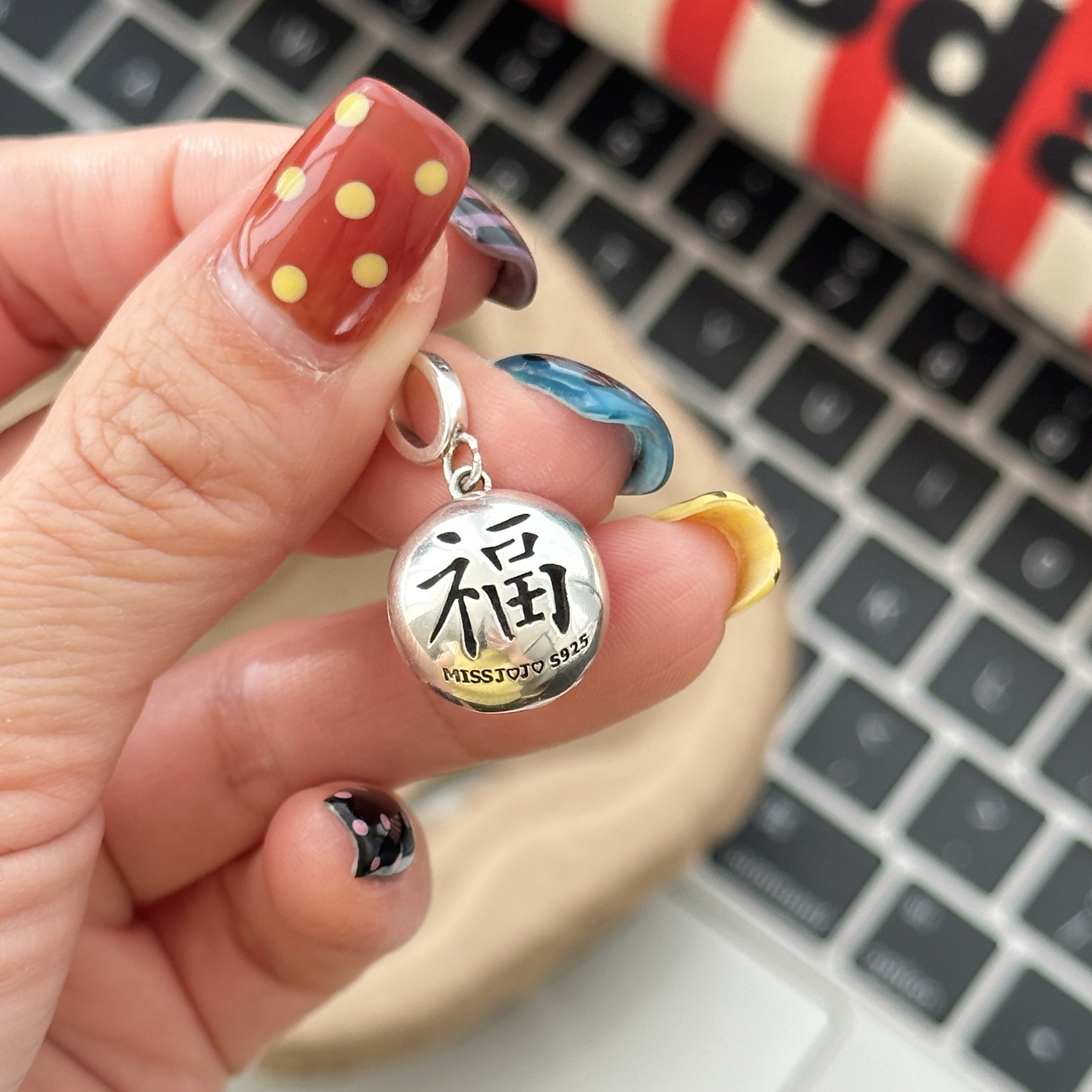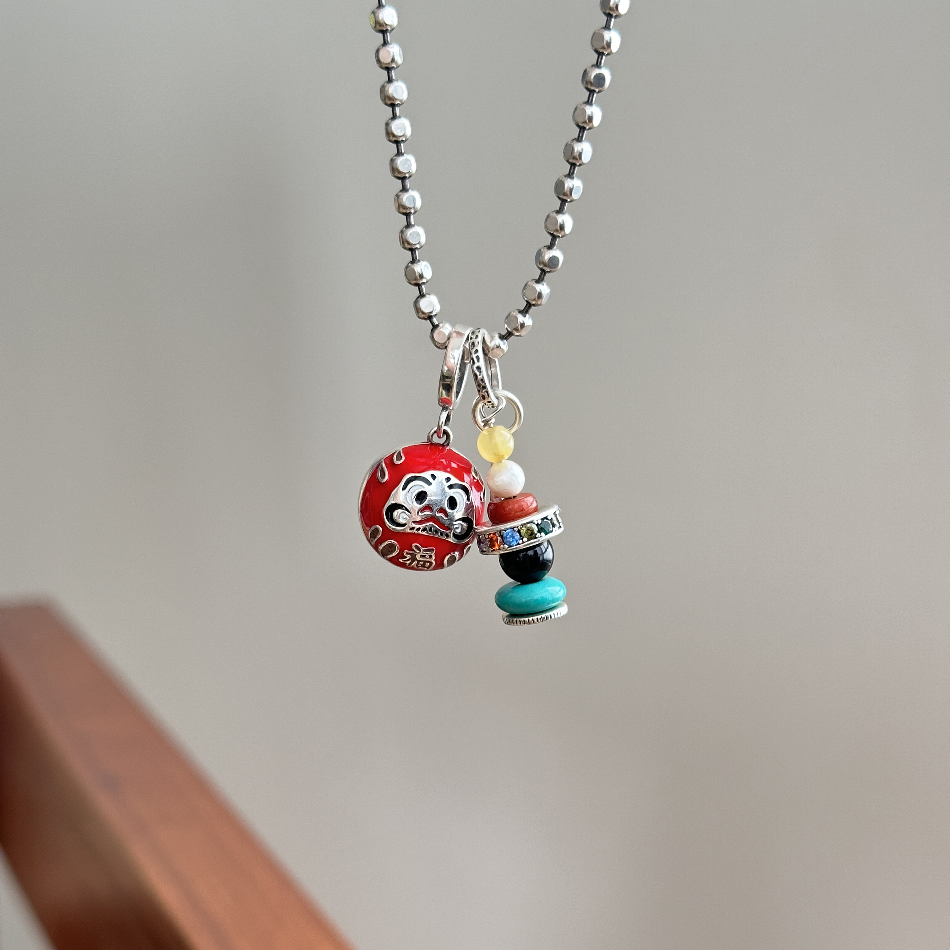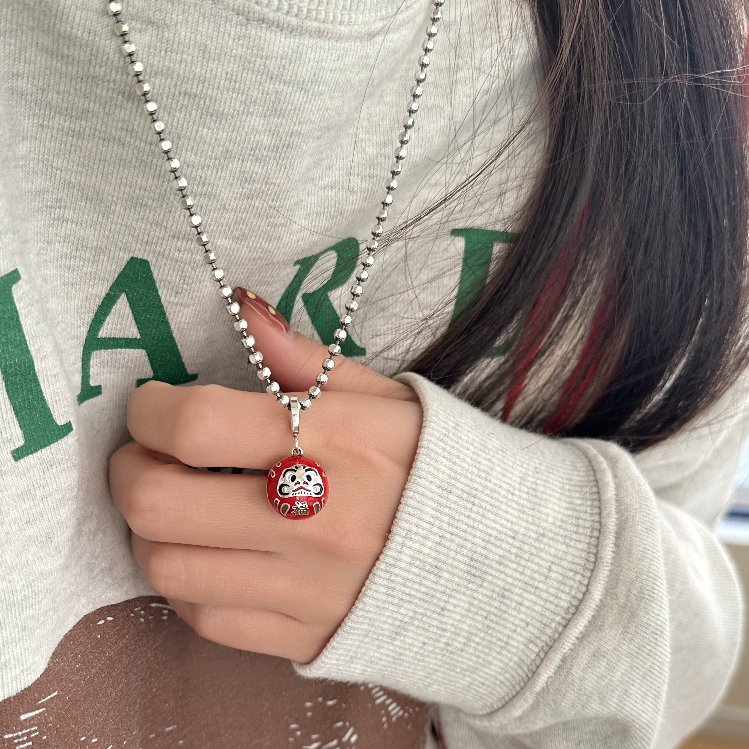 MISSJOJO 国风古风时尚简约百搭气质女红色达摩蛋S925纯银吊坠