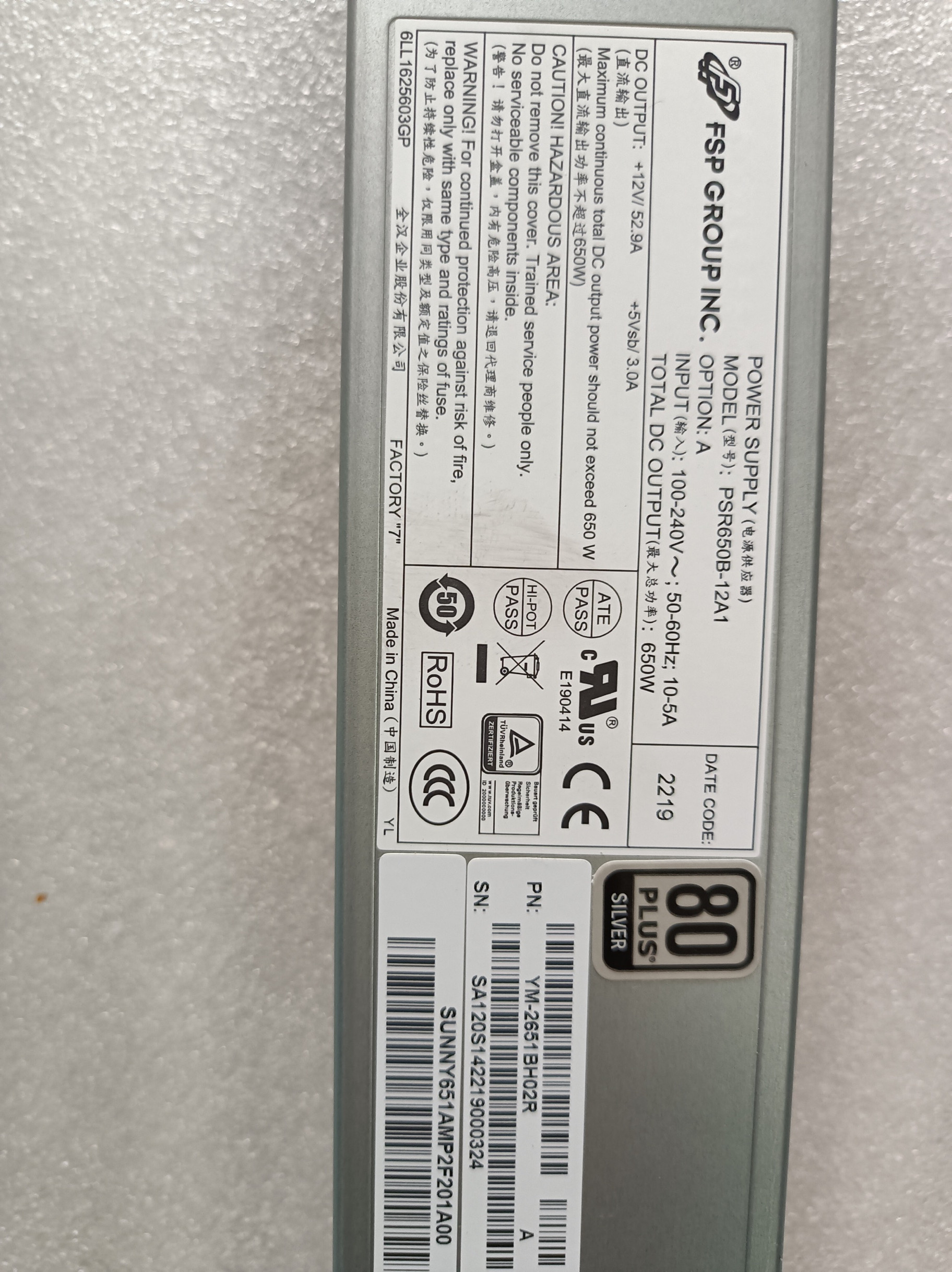 宇视0213C00P解码器电源 PSR650B-12A1 650W服务器电源模块