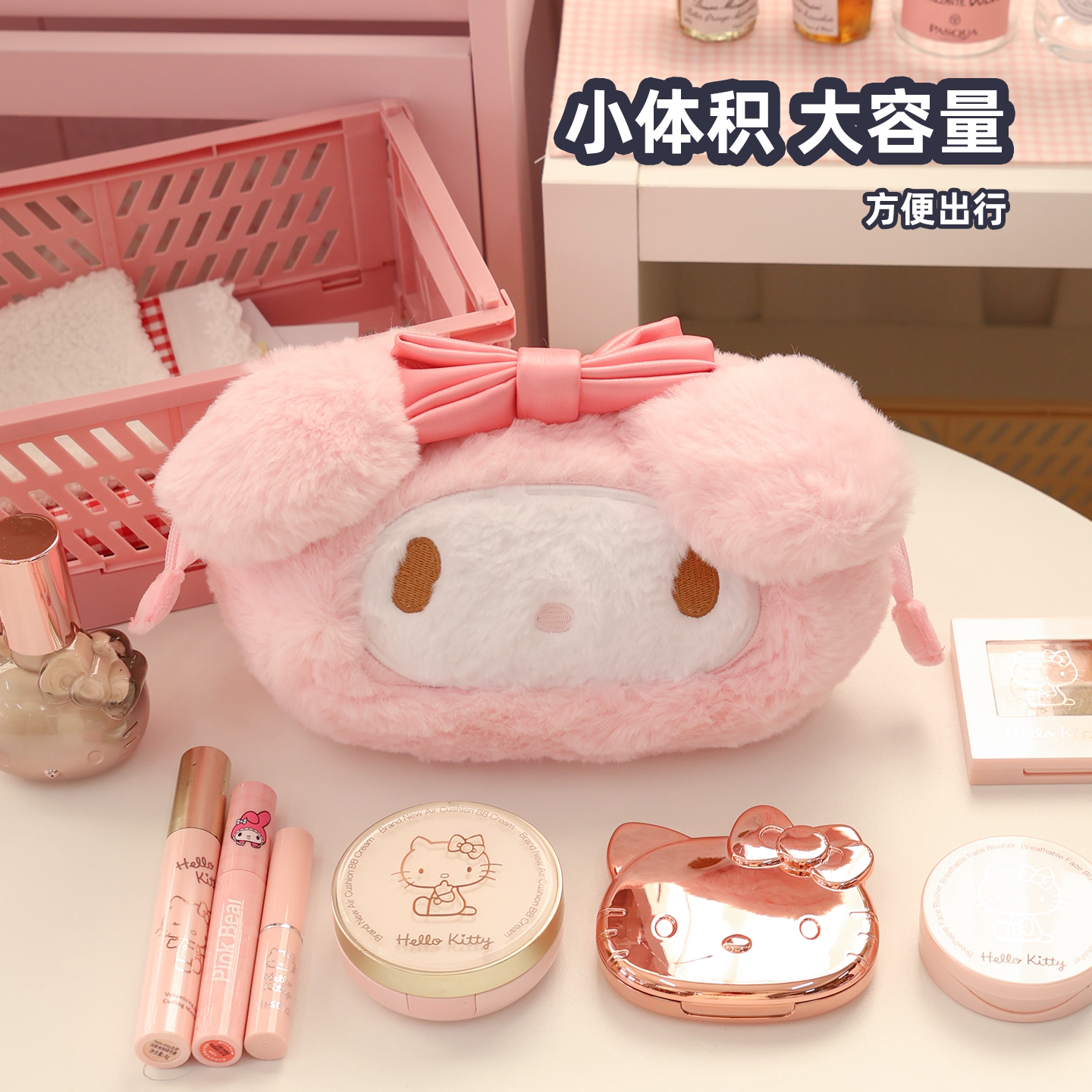 三丽鸥正版酷洛米美乐蒂毛绒化妆包卡通可爱便携收纳包旅行包袋萌