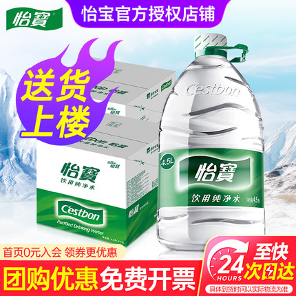 怡宝纯净水4.5L*4桶*2箱家庭大瓶桶装水聪明盖饮用泡茶水非矿泉水