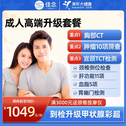 美年大健康高端体检套餐卡中青老年男女士肿瘤CT彩超筛查全国通用