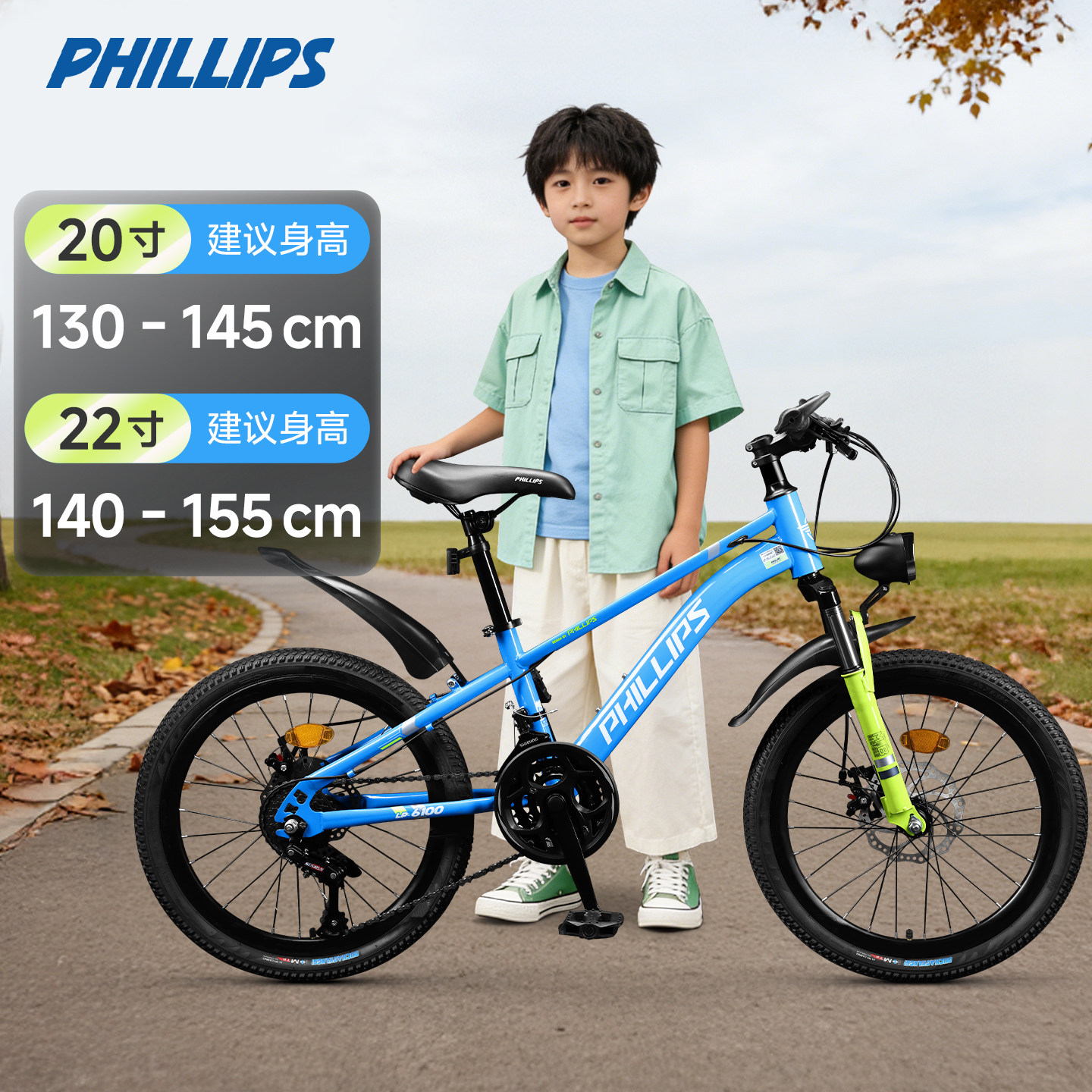 菲利普儿童自行车男女孩6-12岁中大童单车青少年小学生变速山地车