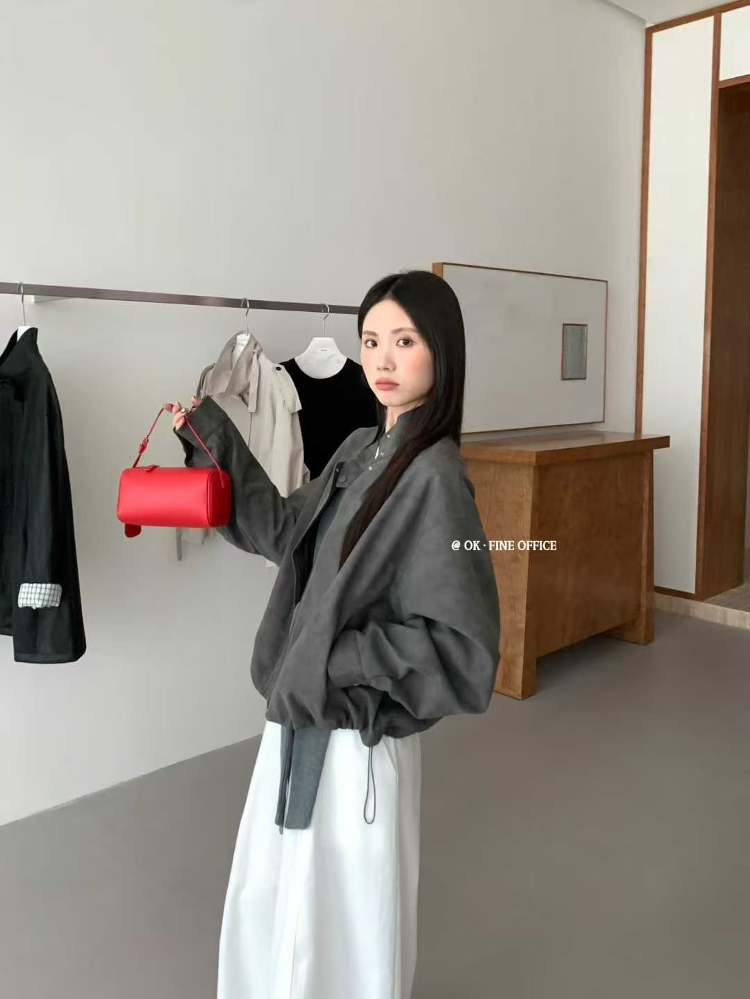 OKfine韩系2025秋新宽松显瘦短款风衣短外套女英伦风高级感上衣