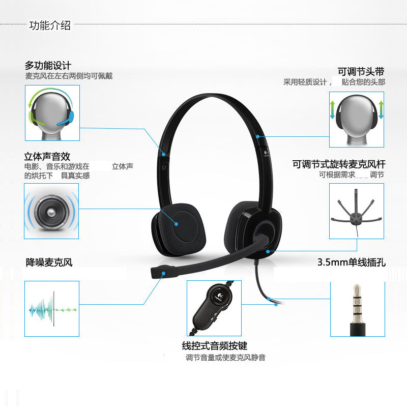 罗技H150/H151头戴式有线耳机带麦克风3.5MM插口办公学习降噪耳麦