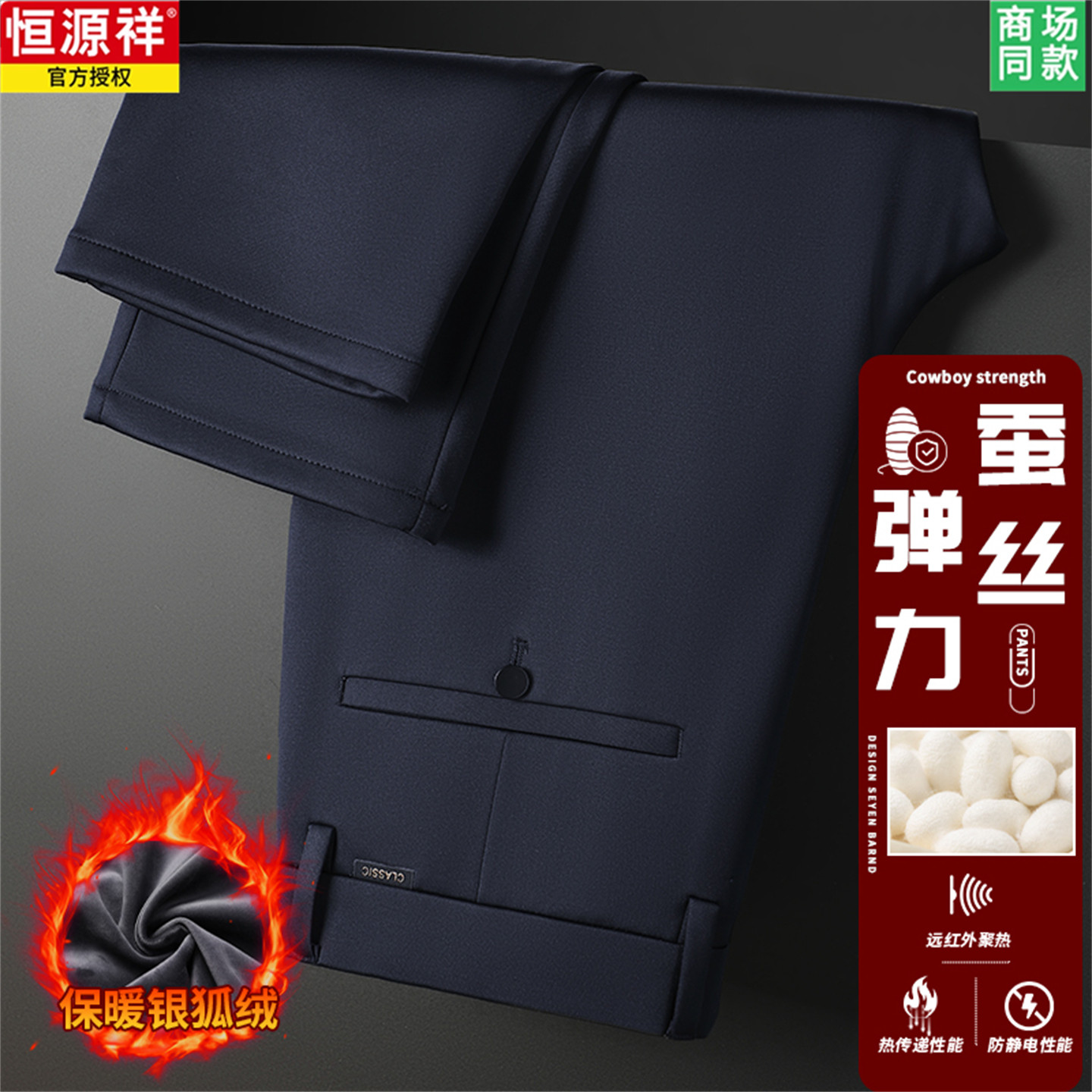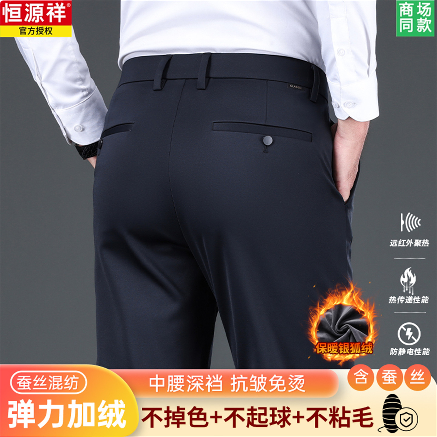 恒源祥休闲裤秋冬季加绒加厚款长裤子男中年人桑蚕丝西装裤爸爸裤