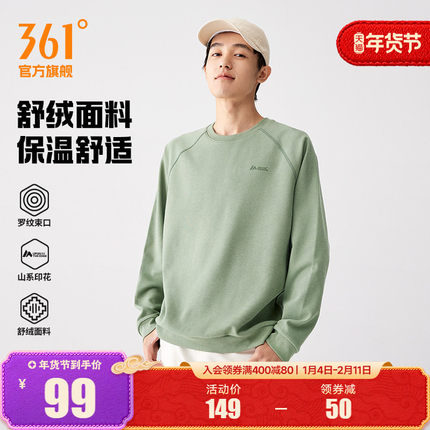361运动卫衣男2025秋冬新款男士抓毛圆领休闲套头衫卫衣印花上衣