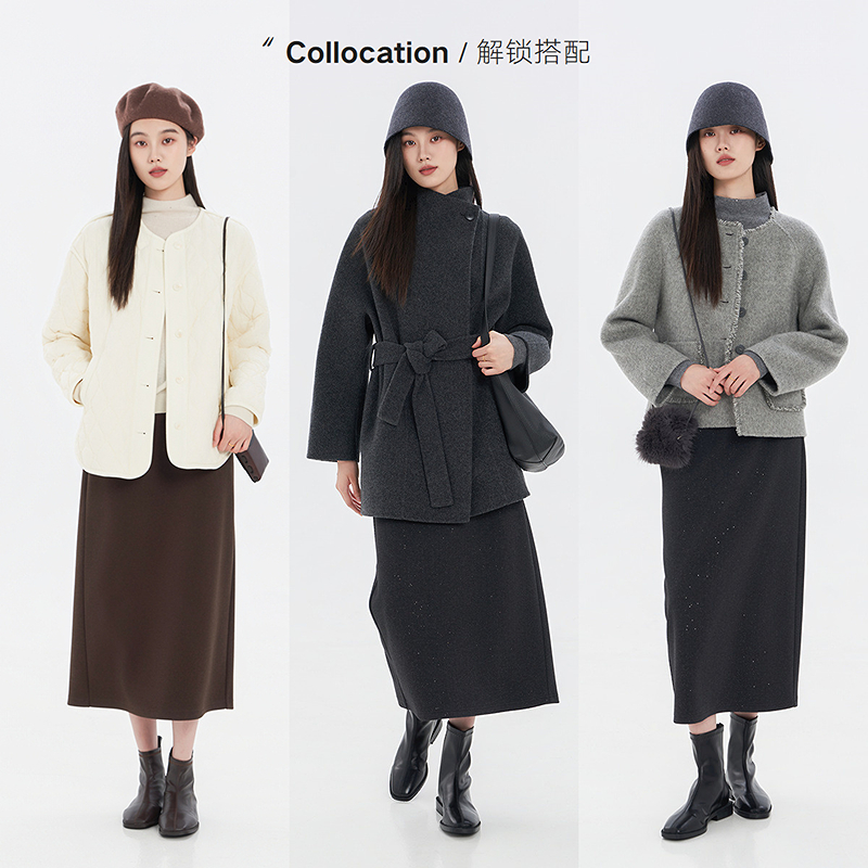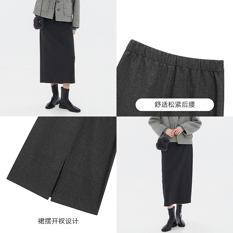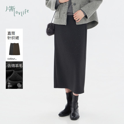 片断半身裙女冬季新款高腰弹力开衩针织裙时尚通勤直筒长裙