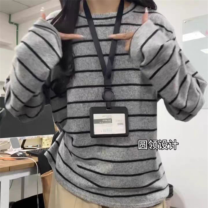 ins超火条纹磨毛长袖T恤女秋冬季韩版宽松内搭打底衫慵懒圆领上衣