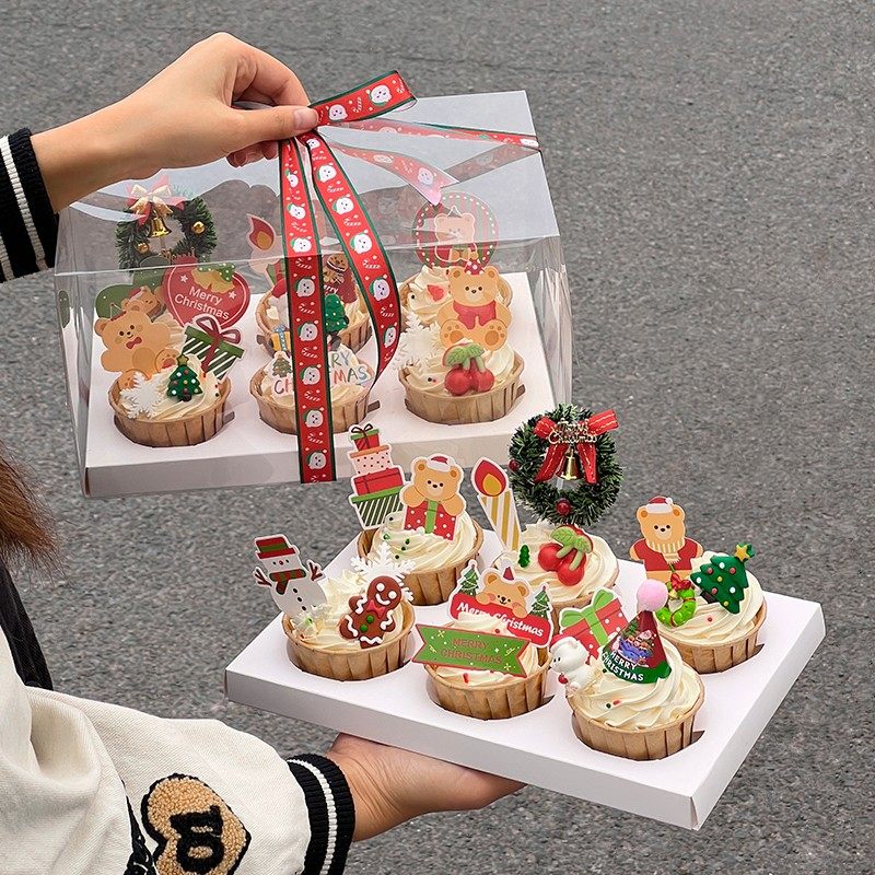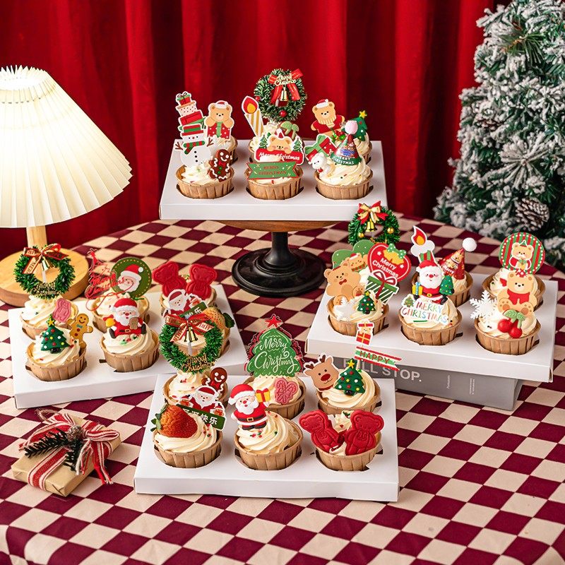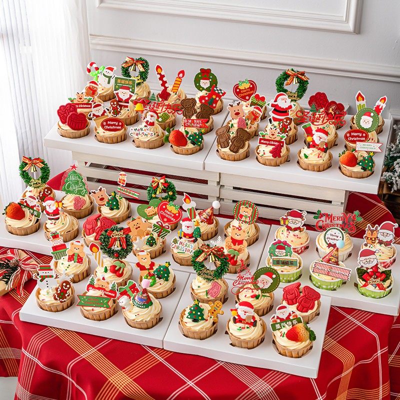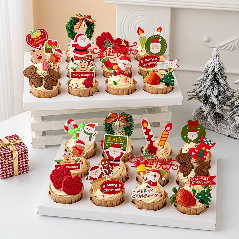 2026圣诞节纸杯蛋糕装饰品草圈小熊圣诞节快乐亚克力插件节日装扮