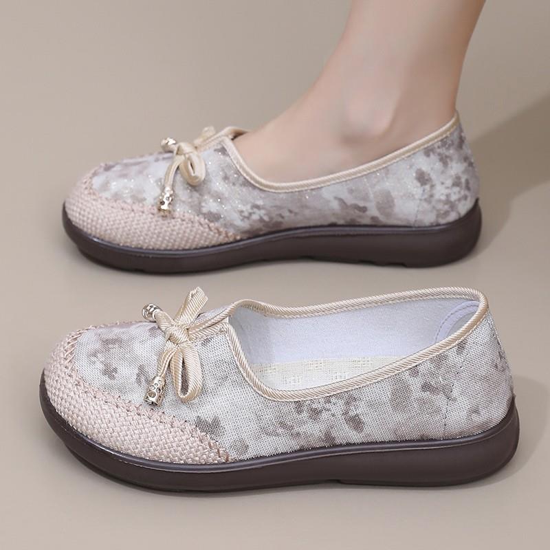 2025春夏老北京布鞋女平底一脚蹬中老年妈妈鞋软底浅口休闲懒人鞋