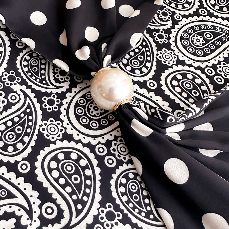 黑白腰果花磁吸扣三角小丝巾女春秋夏季搭配衬衫护颈围脖子薄围巾