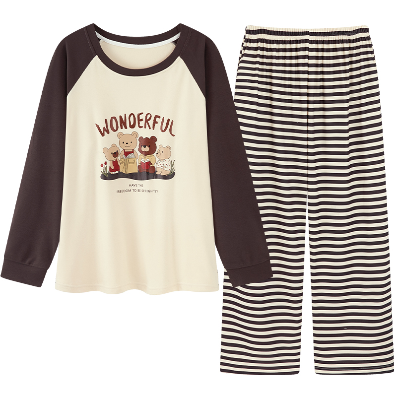 浪莎德绒睡衣女秋冬季卡通圆领长袖加厚保暖薄绒可外穿家居服套装