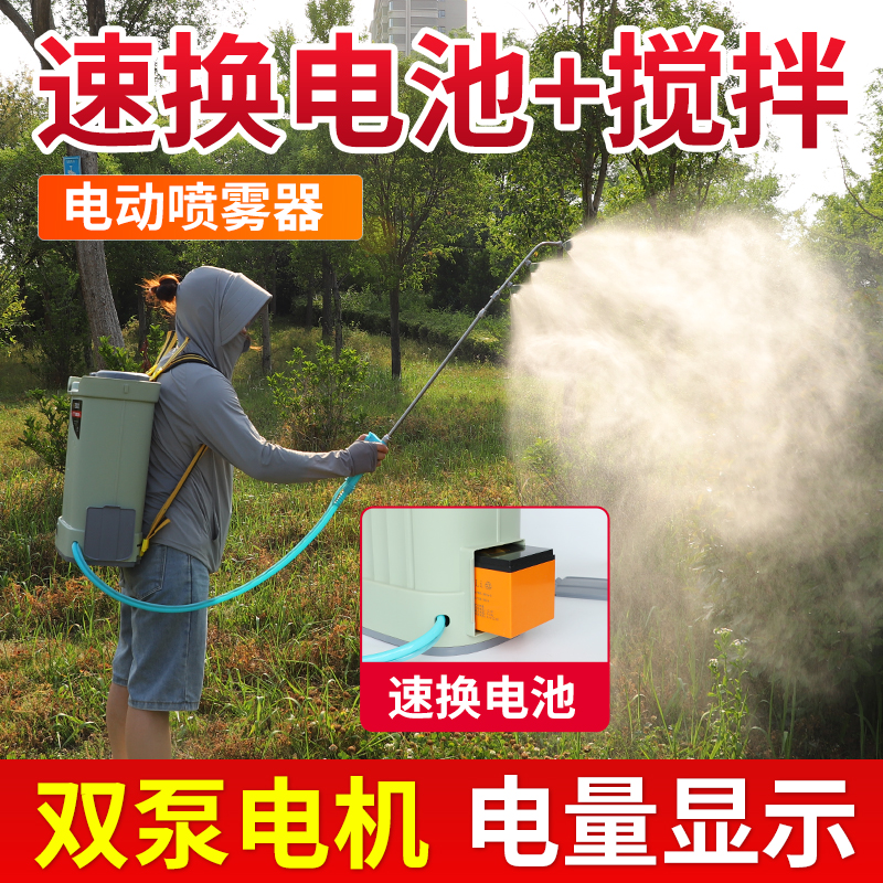 新款双泵电动喷雾器搅拌农用果树打药机高压农药喷雾机快速换电池