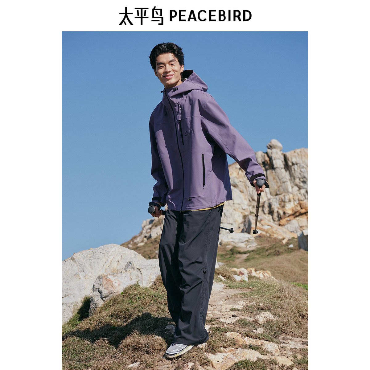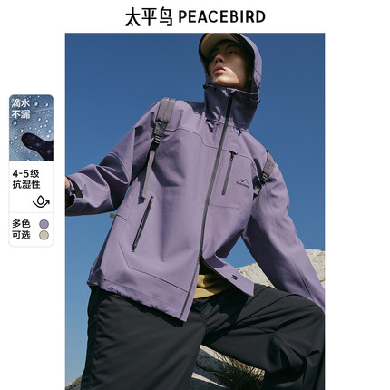 【冲锋衣】太平鸟男装户外徒步连帽夹克秋新款压胶防水休闲外套
