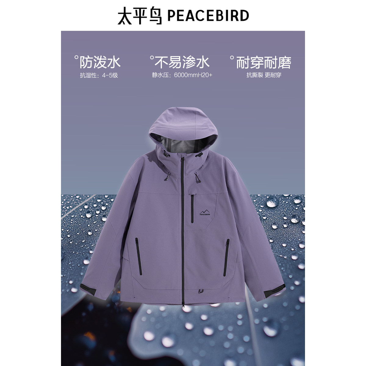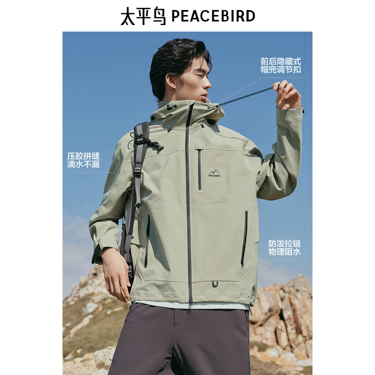 太平鸟男装户外连帽冲锋衣夹克