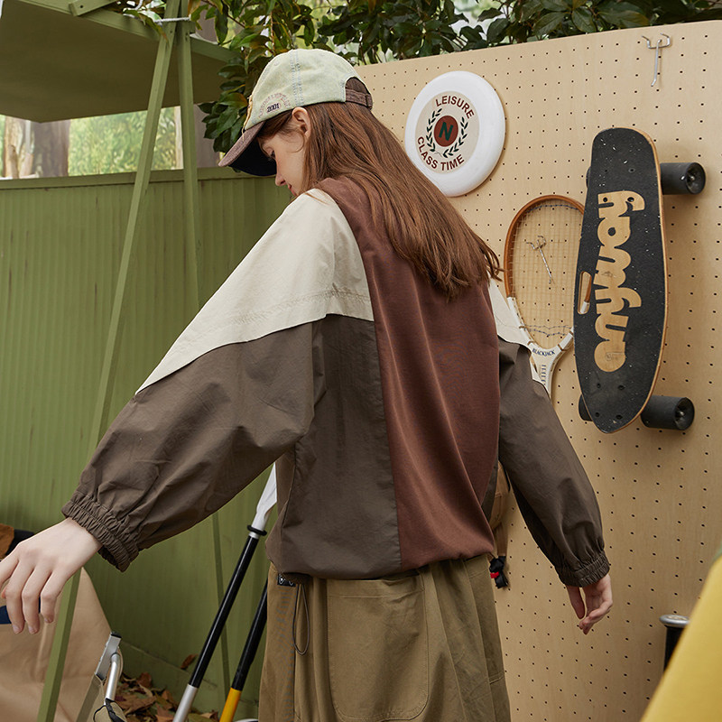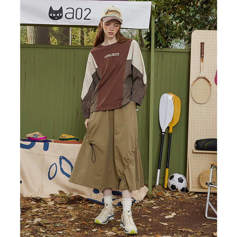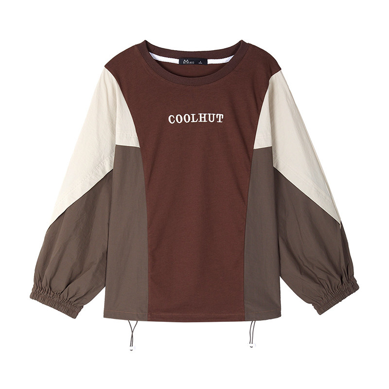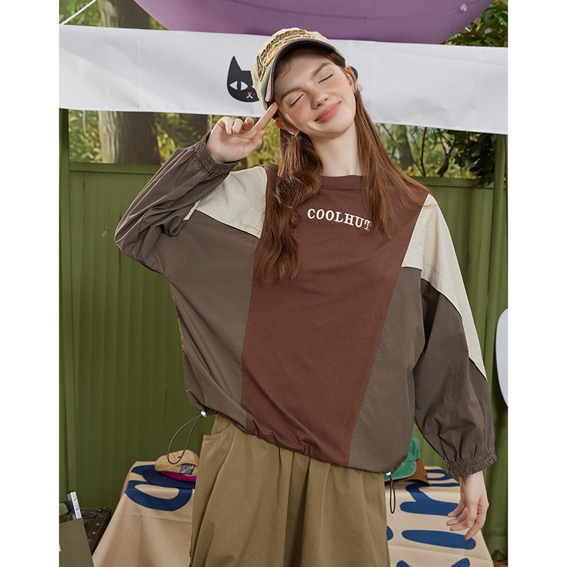 a022025秋季新款撞色拼接设计长袖上衣收腰休闲百搭女式卫衣