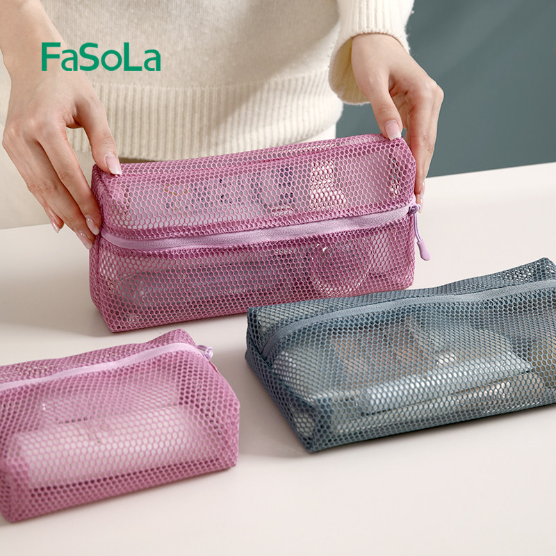 FaSoLa网格收纳包洗漱包透明网纱网兜化妆包网袋旅行网眼收纳袋